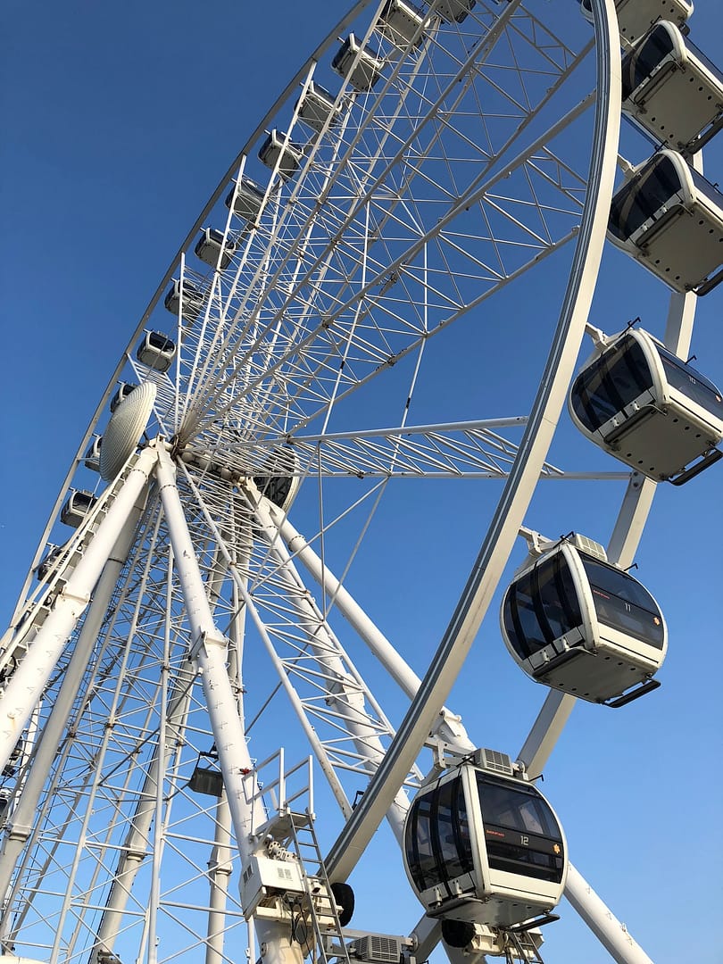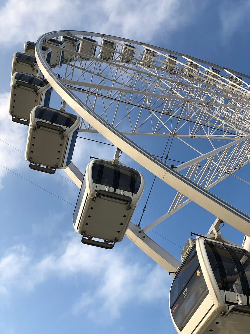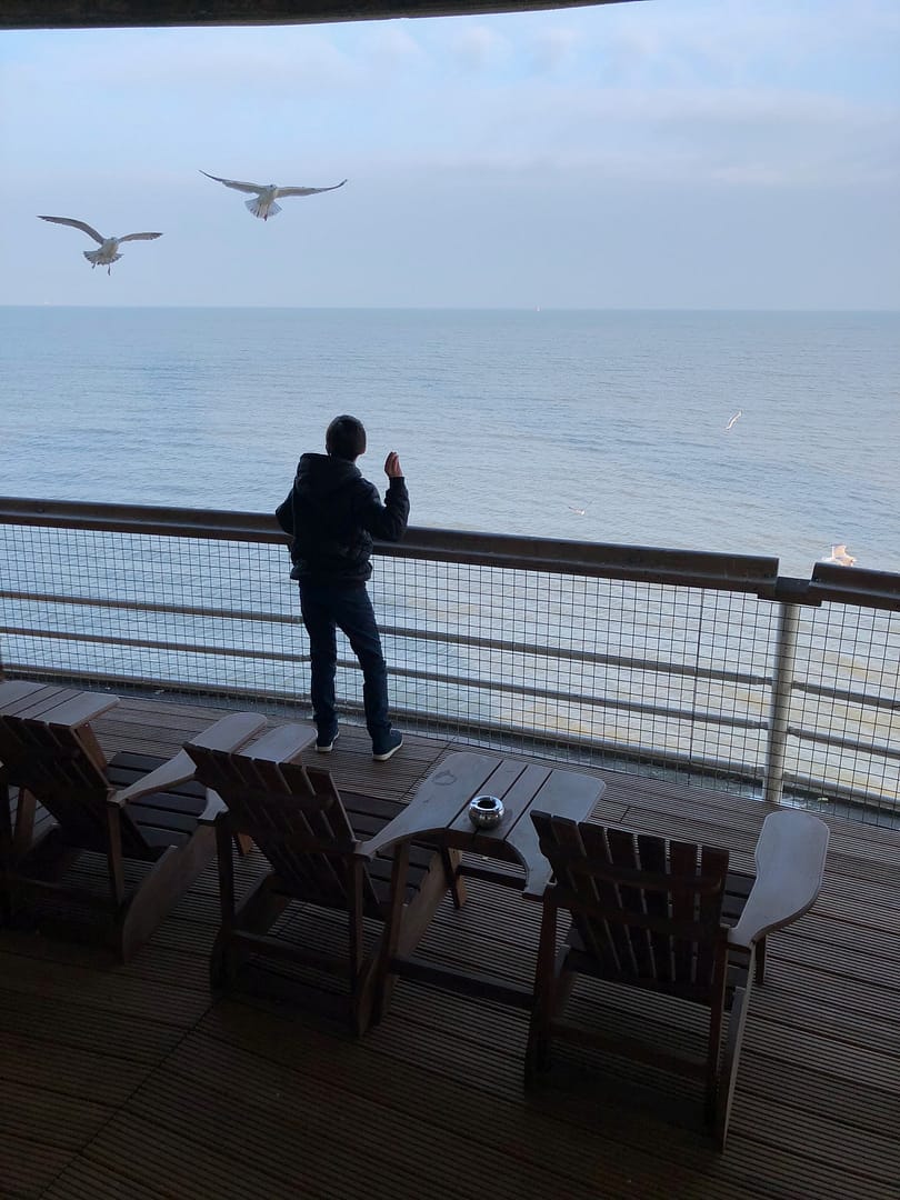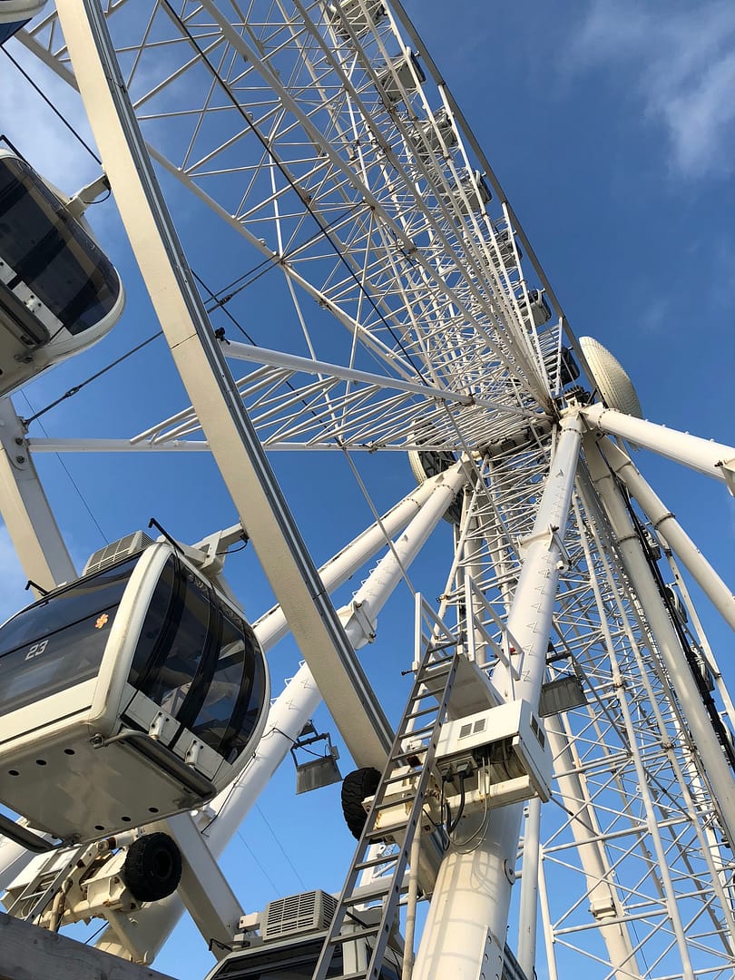 Na het ontbijt gaan we nog eenmaal terug naar “onze” suite. We hebben het brood, wat we niet op kregen tijdens het ontbijt, meegenomen voor de meeuwen. Voeren dus…….. Daarna is het tijd om te gaan….. Uitchecken en eerst even alle spullen in de auto, het weer is inmiddels perfect geworden dus we gaan zeker nog even in de Skyview van de Pier! Durf jij dat wel Ruud? Ik moet wel vanwege m’n manneke, dus ja ik ga!