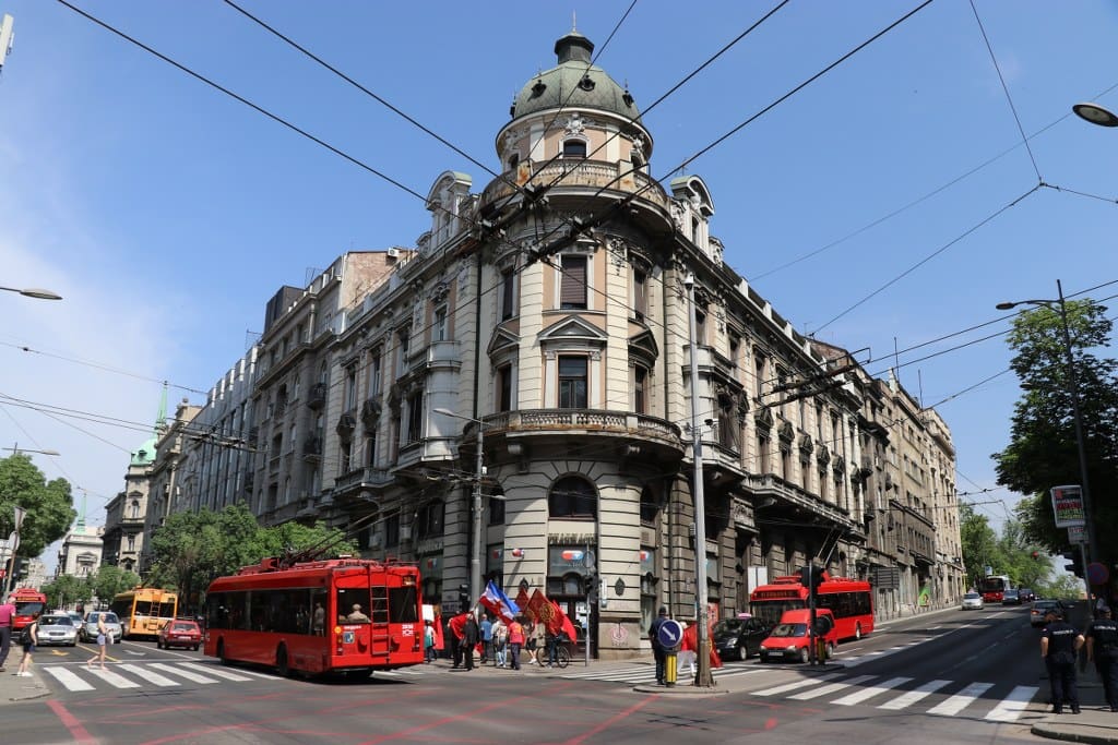 Toen ik de foto (hieronder) maakte werd ik meteen gesommeerd mijn camera op te bergen, kennelijk niet de bedoeling dit gebouw te fotograferen. Moest ik toch ff weten waarom niet: Hier woont de minister president van Servië. O ja…….. Maar ik heb toch mijn foto!