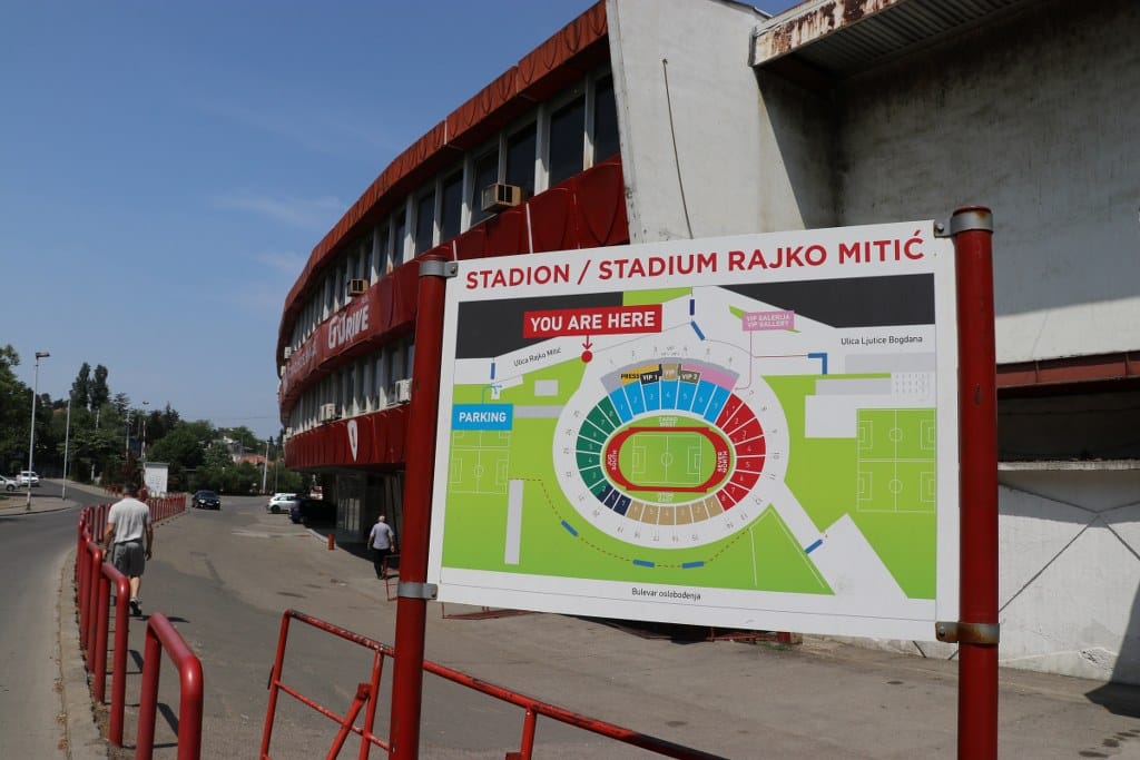 Ik zet de wandeltocht in richting het Royal Palace, kleine 4 km wandelen. Te doen, alhoewel de fitness nog in de benen zit en de temperaturen er vandaag ook niet om liegen, 30 graden! Daarbij loopt deze gehele stad op en af, dus het is ook regelmatig een kilometertje of wat omhoog klimmen. Ach ja, we zijn nog jong! Kom langs het stadion van Rode Ster Belgrado, aan de buitenzijde ziet het Rajko Mitic stadion er wat verouderd oud maar van binnen is het kennelijk goed om aan te zien!? Alles is gesloten dus ik kan er niet in, anders had ik zeker ff een bezoekje gebracht. Altijd goed om andere stadions te bezoeken! Aan de zijkant van het stadion zijn de spelers aan het trainen maar ik mag er helaas niet gaan kijken. Dus ik zet mijn toch weer verder……..