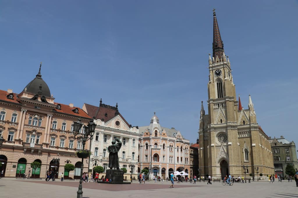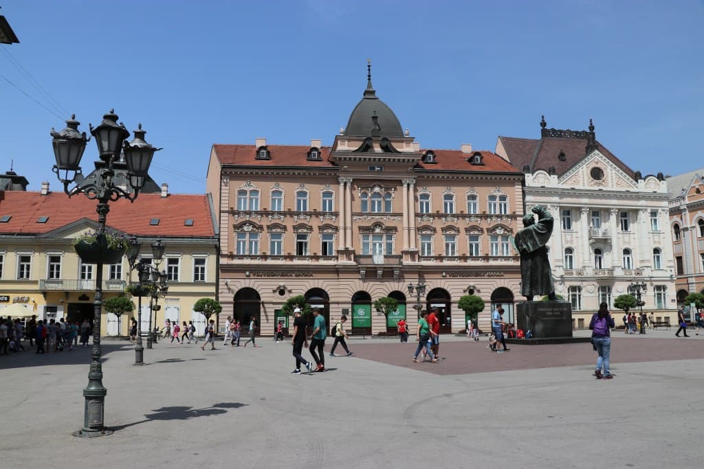 Yep, na wat heen en weer, geslaagd voor een buskaartje. Peron 33 om 10.30 uur. Maar goed dat er wat uitleg bij zat want vanuit die ticket wordt het niks. Gelukkig staat er nog een Engels sprekende dame langs me, want we moeten nu plotseling naar 32 en ik versta er geen biet. Maar goed, rond 10.50 uur zit ik in de bus, op naar Novi Sad. Is zo’n kleine 80 km rijden, dus valt mee. Kaartje kost 760 dinar, is zo’n 6,5 eurie voor een enkeltje. Valt mee t.o.v. ons NL openbaar vervoer. Arrived in Novi Sad, eerst maar eens checken hoe laat en tot hoe laat ik terug kan naar Belgrado, voordat ik in Novi Sad moet overnachten. Wat overigens geen straf zou zijn maar ik heb geen spullen bij. Mogelijkheden genoeg dus ik kom vast weer een keer terug. Ook hier weer veel woonflats.