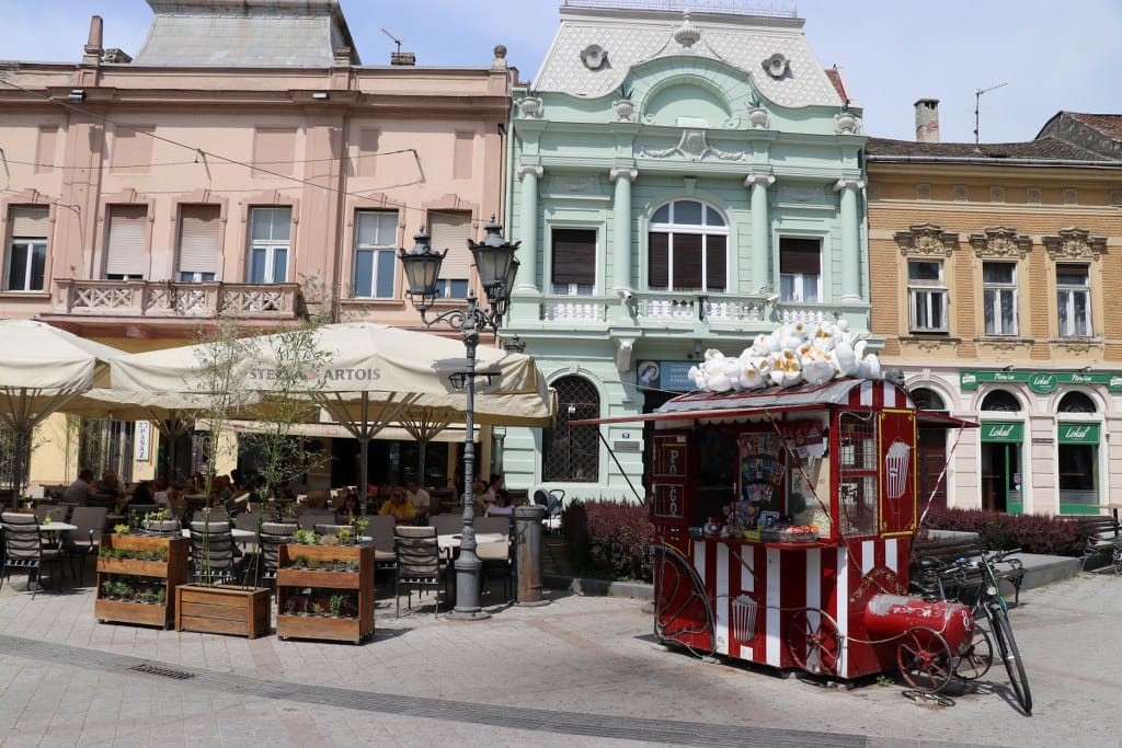 30 april: GOEDEMORGEN Zepter! Vroeg uit de veren, kan ook als je er op tijd in ligt. Lichte maaltijd op de kamer en snel de fitness in! Na de fitness een quick ontbijtje en op naar het busstation, 10 minuutjes wandelen vanaf het hotel. Vandaag staat dagje Novi Sad op het programma! Marieke Verlangen van Gelukkig-wel, weetje wel van twee weken terug in de Ger, die is getrouwd met een Serviër. Die gaven mij als tip dagje Novi Sad, goede tips moet je altijd opvolgen! Ook popcorn verkoop is er overal, zo ook bij mijn hotel voor de deur.
