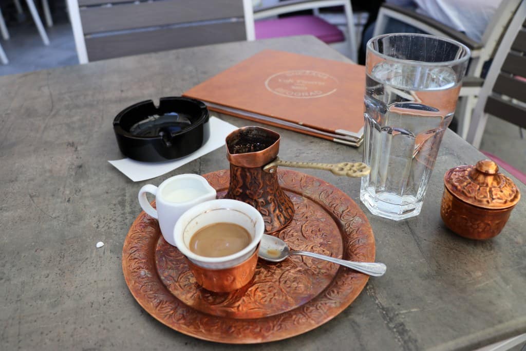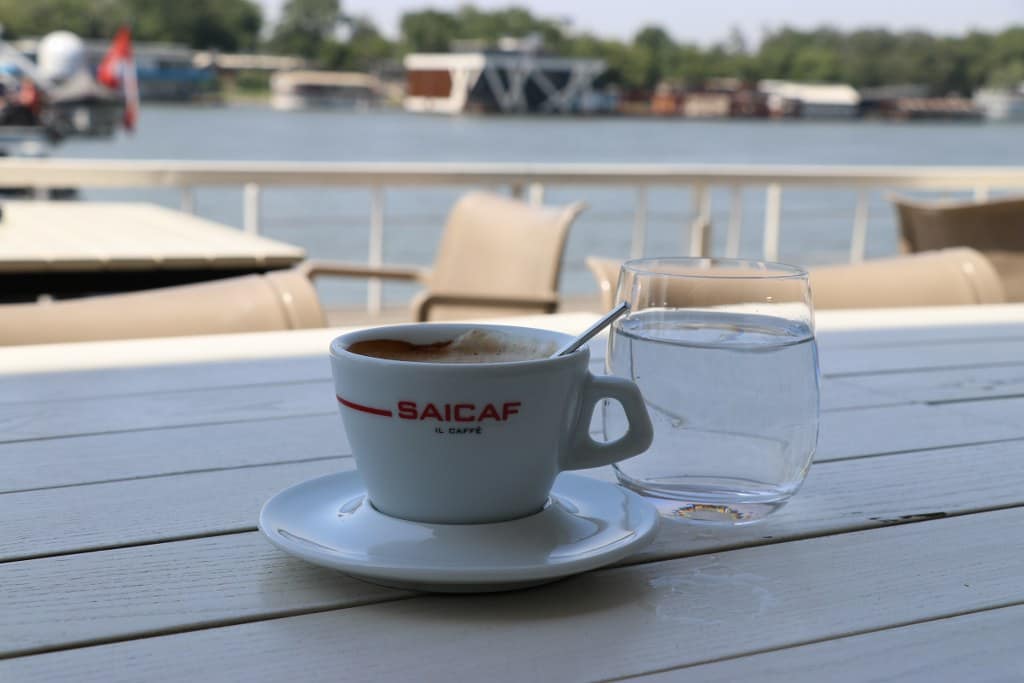 Nabij mijn hotel zit ook Hotel Moskva, en yes hier hebben ze goede cappuccino! Lekker en dik verdiend! Je kunt hier overal koffie kopen maar echte goede koffie laat te wensen over. Deze twee bakkies cappuccino gaan er in ieder geval in, zeker na zo’n kleine 15 km wandelen met deze hitte.