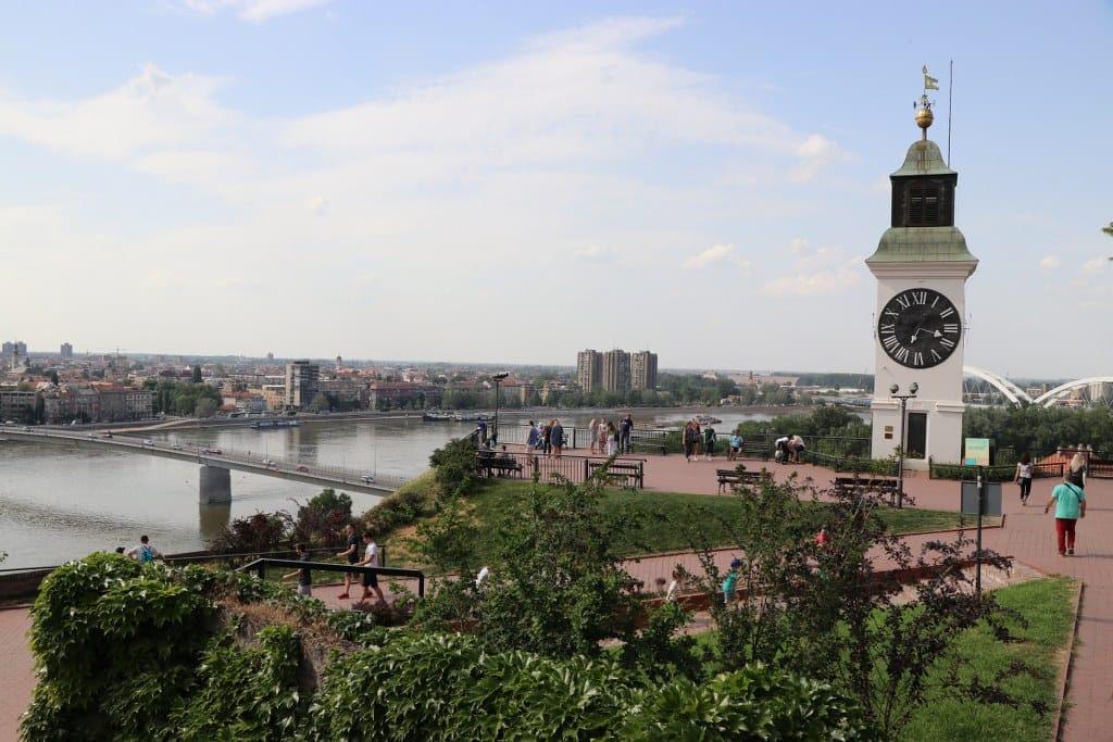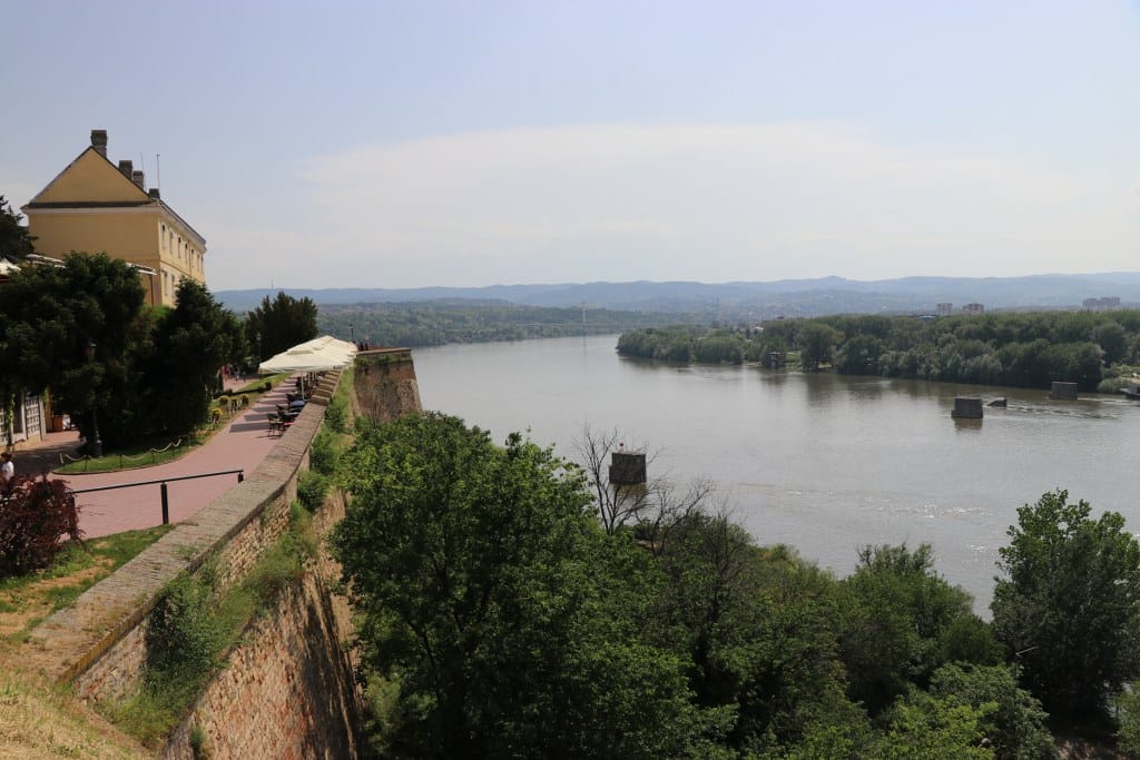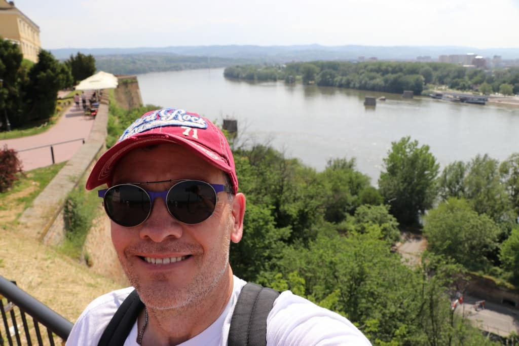 Via een wandelparkje met de burg over de Donau, yep daar ist ie weer! Op naar het Novi Sad fortress aan de andere kant van de Donau. Lekker weertje om hier omhoog te klimmen! Water, water, water……. Glasses with a view………