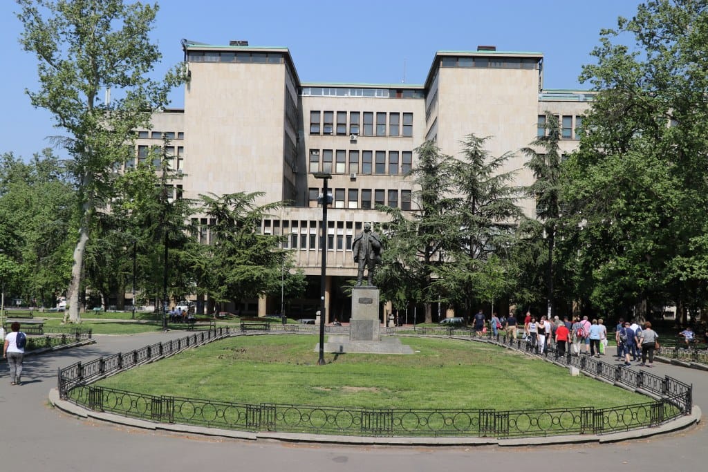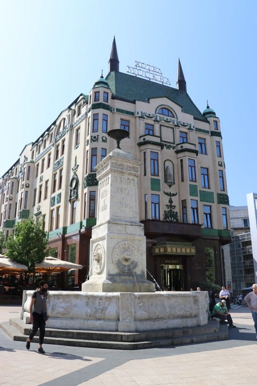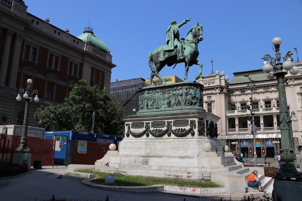 28 april: GOEDEMORGEN Belgrado! Op tijd uit de veren (06.45 uur) om de fitness van het Hotel eerst te verkennen! Fit aan deze zaterdag beginnen kan geen kwaad. Heerlijk 1,5 uur stevig gesport, goed begin van deze dag. Wordt warm hier vandaag, rond de 29 graden, dus al het vocht wat er uit is, hoeft er vandaag niet meer uitgezweet te worden. Rond 09.15 uur is het tijd voor ontbijt. Ik had een leuke app gevonden “Belgrade talking”, een echte aanrader. Je hebt daar mooie wandelroutes in staan en bij de bezienswaardigheden tekst en uitleg. De oortjes voor m’n iPhone mee dus! De eerste bezienswaardigheid ligt al vrij dicht bij m’n hotel, een ander hotel, Moskva Hotel genaamd. Een beroemd/berucht gebouw. Aangekomen bij het Republic Square, blijkt daar de wielerkoers Belgrade – Banjaluka – Belgrade te vertrekken. Natuurlijk even kijken naar deze afgetrainde jongens! Ben er nu toch…..