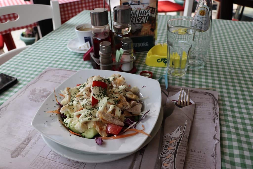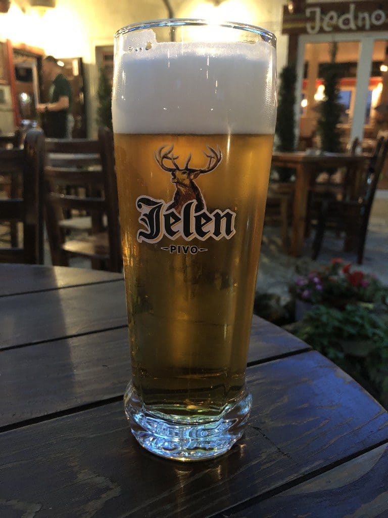 Rond 17.30 uur terug in het Hotel, tijd voor opfrissen en dan het avondprogramma eens bekijken. Tis warm geweest vandaag dus een extra douche is een must! Rond 19.00 uur wandel ik terug naar de wijk Skardarlije alwaar ik aanbeland bij Jedno Mesto. Hier ga ik genieten van een tweetal heerlijke biertjes: Lokale Jelen Pivo en een Niksicko Pivo uit Montenegro, een donkere! Daarbij eet ik een lekkere kip met champignonsaus en een overheerlijke salade. Een erg goed restaurant waar je goed en gezellig kunt zitten, ook buiten waar ik zat. Genieten van de bovenste plank. Je rekent hier overal af met de Servische dinar, 100 dinar is ongeveer 0,85 euro. Je loopt dus al snel met een pak geld rond hier.