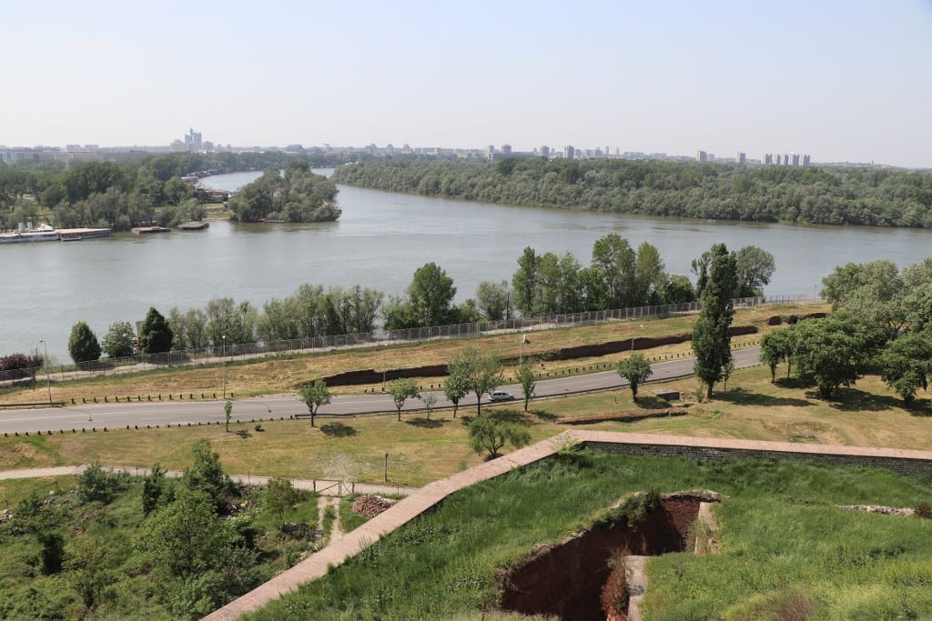 Aangekomen bij het Belgrado Fort, kun je zien dat ook de meeste Serviërs op zaterdag verlof hebben. Lekker weertje dus schaken in het park. Vanuit hier heb je een prachtig uitzicht over de stad en de Sava rivier! Op deze T-splitsing van rivieren komt de Sava rivier bij de Mighty Donau Rivier samen, de Donau is de op een na langste rivier van Europa.