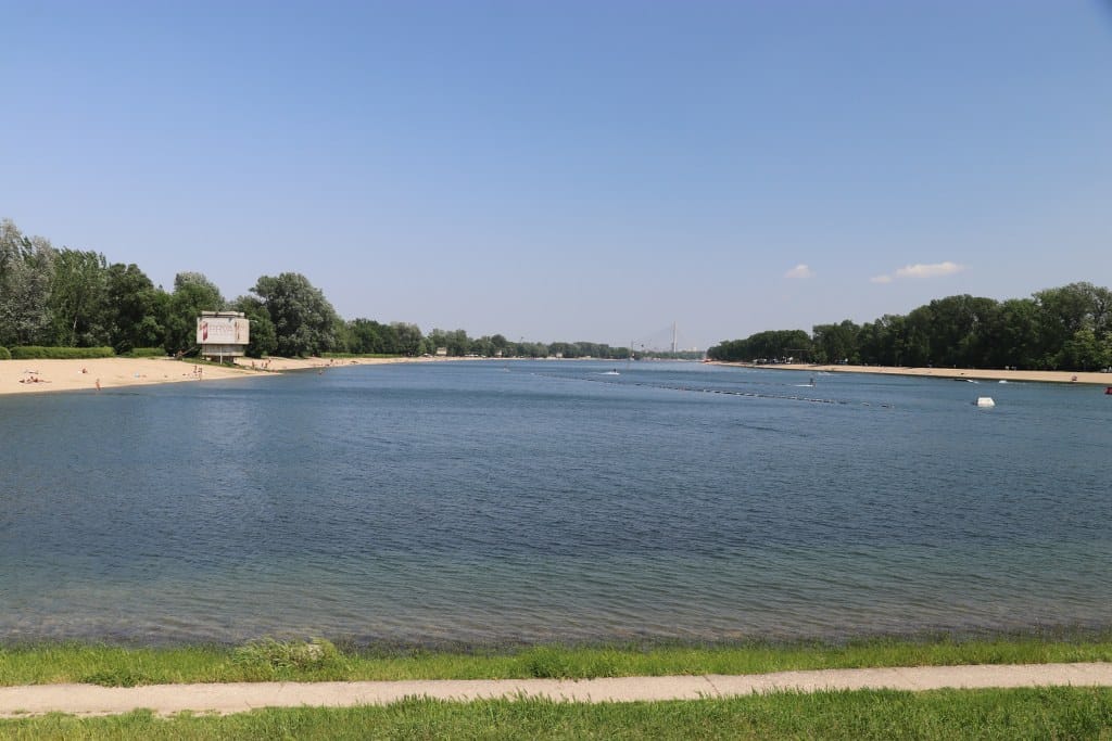 Voor de mensen uit Belgrado is fietsen ook een attractie want het verhuren van fietsen geschied hier meer aan locals dan aan toeristen. Kun je ook wel zien dat ze het niet gewend zijn want ook oudere hebben moeite om recht te fietsen. Niet echt een fietsland hier. Hartje stad is ook niet aan te bevelen om te gaan fietsen maar langs de Sava en Donau is het prima te doen, sterker nog een must dingetje. Deze toerist fietst dus vrolijk tussen de Serviërs mee…….. Zon, zee (uuuhhhh meer) en strand……….. Dit alles ligt op Ada Ciganlija, wat met de fiets goed te bereiken is. Een leuke recreatiegebied, zeker met dit weer goed te doen.
