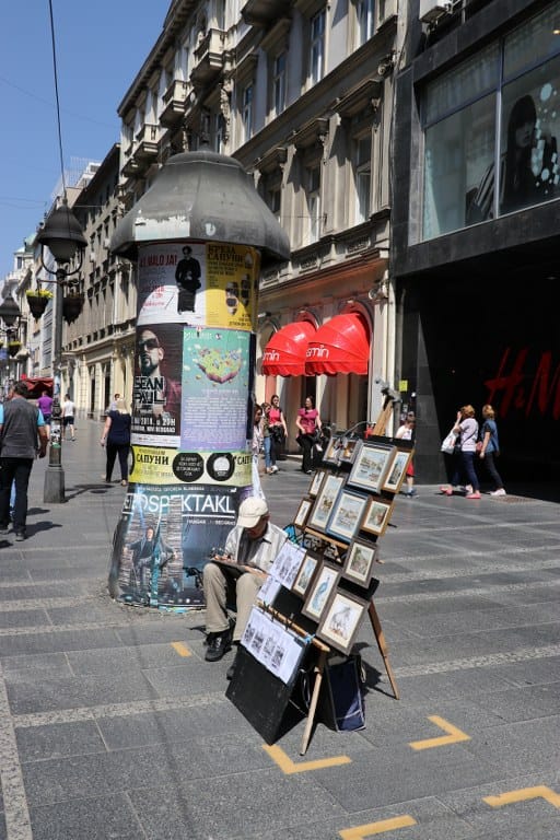 Ik beland aan bij Cafe Snezana voor een traditionele Servische Koffie, heavy stuff maar gelukkig zit er water bij. Voor de Espresso liefhebber zeker een aanrader! Straatartiesten en straatverkopers zijn er echt vele! Sommige verkopen leuke werkjes, deze schilder schildert mini schilderwerkjes, zo klein zelfs dat je ze met een vergrootglas moet bekijken anders zie je er niks van. #Grappig