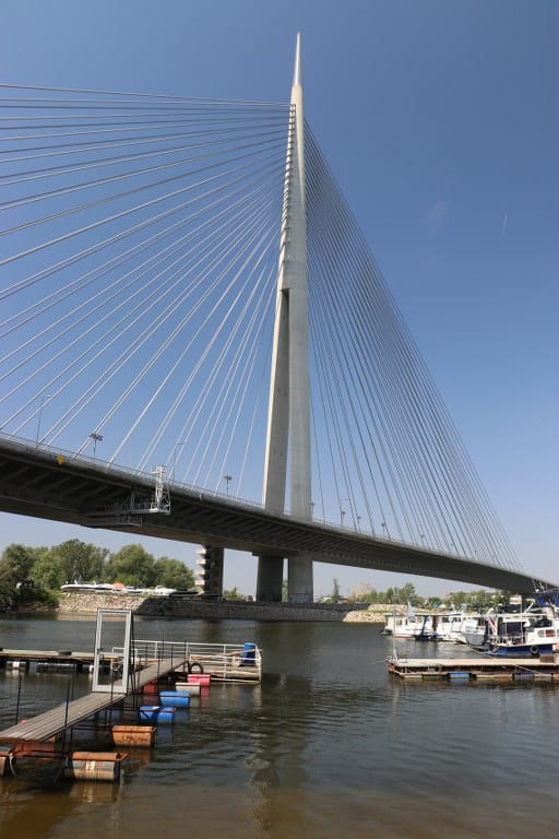 Daarna is het feest! Lekke achterband, klein spijkertje er in gereden. Beetje balen. Dus terug wandelen naar dat recreatiemeer, daar is van alles te doen en dat is ongeveer 2 km, dus dat valt wel mee. Bellen met Markoni Bike Rental maar die grapjassen hebben geen service op locatie, ook lekker. Dus wandelen, aan het meer is ook een Markoni locatie. Maar goed, dat is nog 3 km wandelen. Onderweg kom ik een ander fietsverhuurstation tegen, mooi (!!), die gaan vast mijn band maken. Mooi niet, zelfs tegen (forse) betaling die ik aanbied, doen ze het niet. Toch stijfkoppen dan die Serviërs? Vriendelijk zijn ze op deze locatie in ieder geval niet. Verder wandelen dus naar Markoni, daar krijg ik direct een nieuwe fiets mee. Na deze wandeltocht (en dat wilde ik juist niet vandaag, vandaar fiets gehuurd), eerst een salade en twee flesjes water. Mega dorst. Terug aangekomen bij het oude stadsgedeelte (Old Belgrade), toch ff de brug over naar New Belgrade, zoals dat hier noemen. Dit levert in ieder geval nog enkele leuke plaatjes op van de stad.