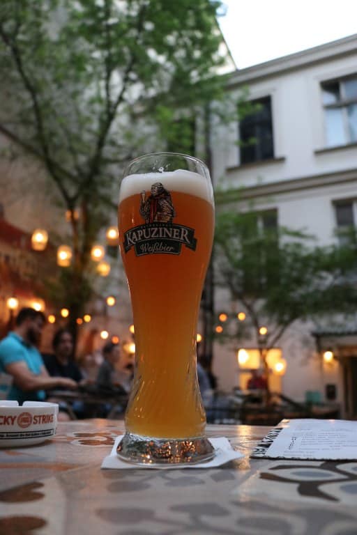Eerst inruimen van de kamer, lijkt wel een appartement met een separate keuken, woonkamer, douche/toilet en slaapkamer. Echt grandioos ruim en gaaf. Aansluitend tijd om te happen, het is inmiddels 19.00 uur geworden en veel ambities om van alles nog te zien heb ik niet dus rondom het Hotel blijven is een must! Ik beland aan bij Azbuka, een erg gaaf restaurant met een leuke binnenplaats. Aangezien de temperatuur erg goed is, is het prima om buiten te eten. Leuk tentje, lekkere Kapuziner Weissner, een overheerlijke beefsalad, wat wil een mens nog meer op koningsdag! Aansluitend toch nog ff kort de straat op, op zoek naar Samo Pivo.