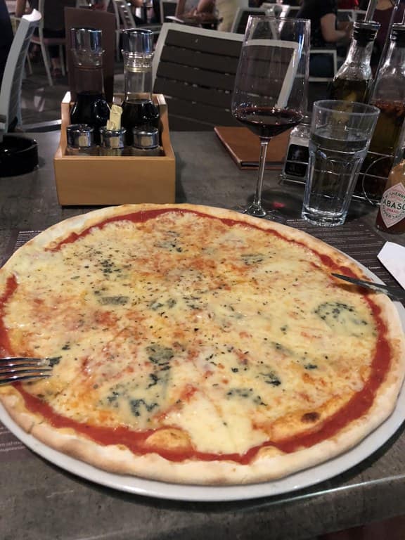 Rond 17.00 uur is het weer opfristijd want ook deze dag is een tweede douche geen overbodige luxe. Daarna is het tijd voor een dik verdiend biertje, alleen alst ie ijs- en ijskoud is! Zin in een Weissner, dus ik loop terug naar de Gunners Pub, daar hebben ze in ieder geval Paulaner van de tap en kan ik lekker buiten zitten. ik zeg PROOST! Waar ik een aantal dagen terug mijn traditionele Servische koffie dronk beland ik nu aan voor een hapje. Het is geworden een 4 kazen pizza en een carpaccio vooraf, mijn laatste avondmaal is een feit bij Snezana!