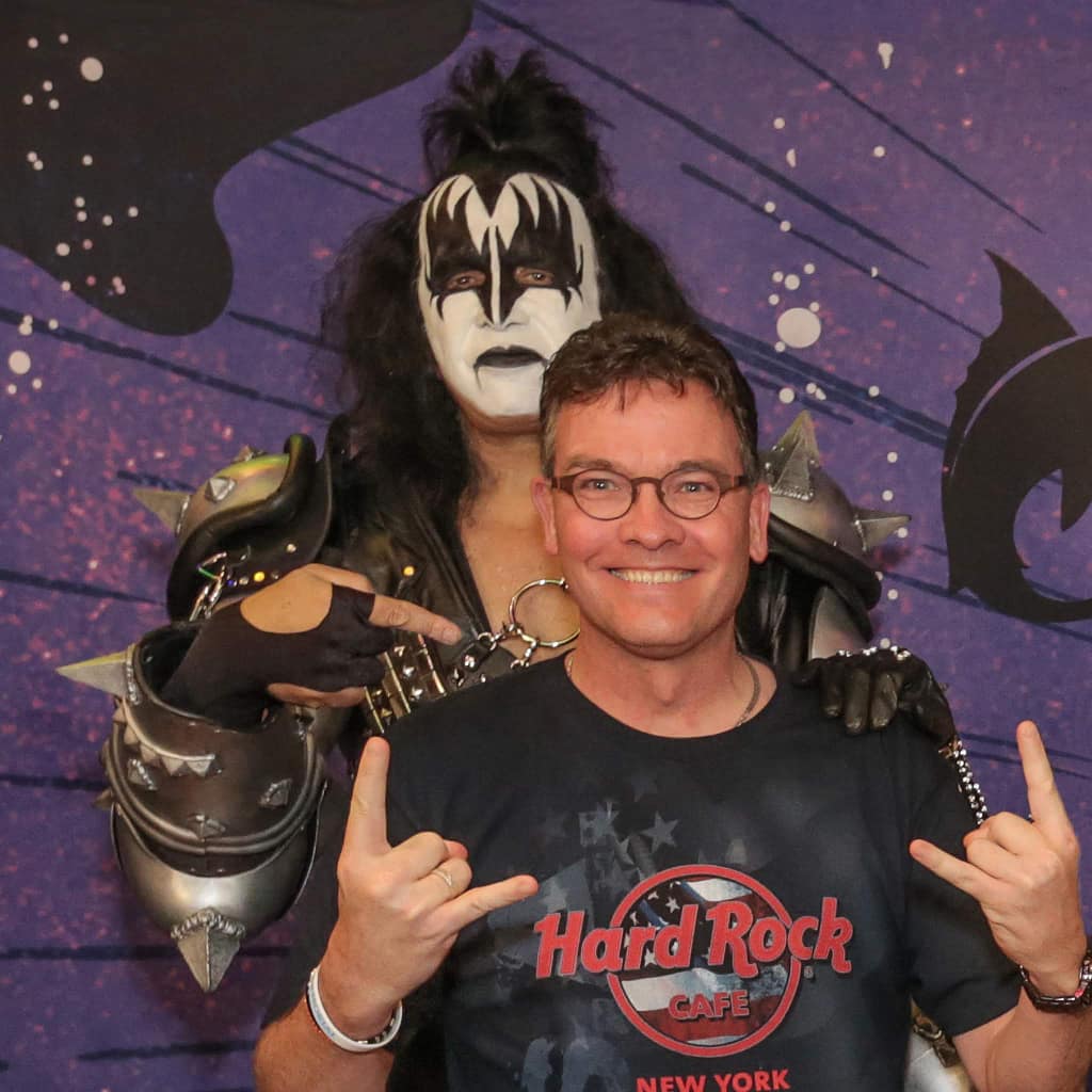 Door mij genomen foto bij Fame in Amsterdam, 1992! Times changes! Ik met Gene op KISS KRUISE VI en KISS Kruis VII. Deze foto’s staan klaar om gesigneerd te worden op 22 juli in Amsterdam, the Vault Experience.