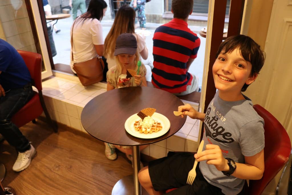 Na dit bezoek is het tijd om mijn Zweedse KISS vriend Roney Lundell weer te ontmoeten. Elkaar in 1992 ontmoet tijdens de KISS UK tour, Revenge met Sphinx podium (voor de kenners), deze (KISS) band is nooit weggegaan. Gelukkig is daar de laatste jaren social media bijgekomen maar we hebben elkaar vanaf 1992 een aantal maal actief ontmoet! De laatste keer was in 2013, ook in Stockholm, volgens mij ook iets met KISS……… Hoe dan ook, blij hem weer te ontmoeten en onder het genot van een hapje en biertje weer een bij te praten, YEAH! Zijn 8 jarige dochter Anea is er ook bij, in het Zweeds en Remco in het Nederlands. Leuke maar vooral gezellige taferelen. KISS is echt veeeeeel meer dan alleen muziek, het is wereldwijde vriendschappen en meer! Anea weet ons nog te begeleiden naar een IJssalon, alwaar Remco nog een lekkere wafel naar binnen kan werken. Genieten in Stockholm gaat dus zo! (KISS) friends forever!