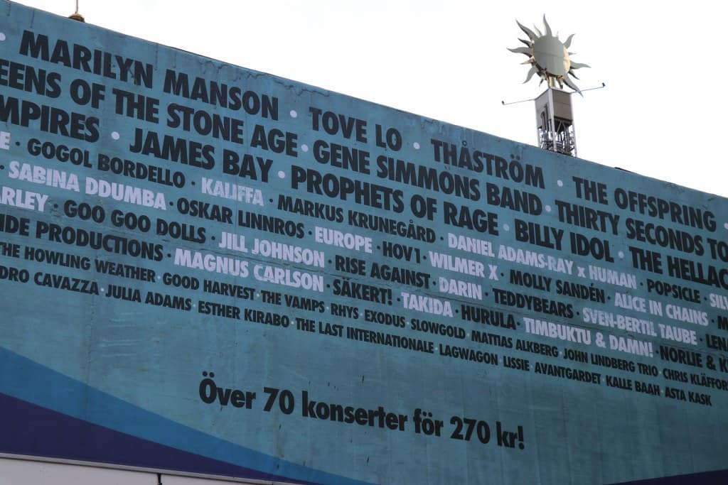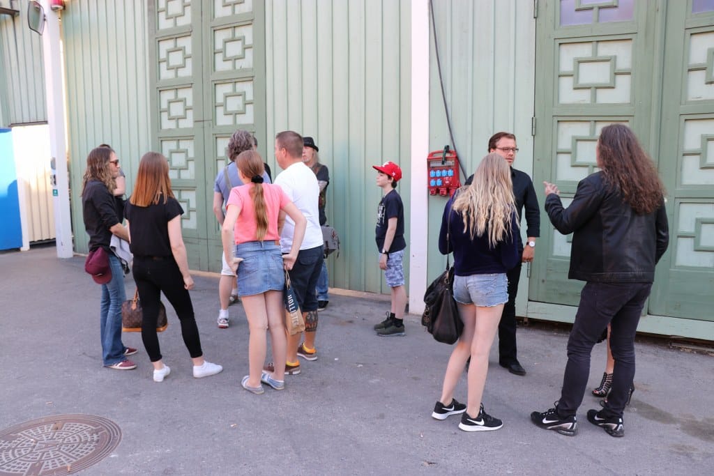 Bij aankomst worden we eerst naar een plaatsje gestuurd waar de guestlist mensen binnen mogen. Met de allergrootste dank aan Ryan Spencer Cook, gitarist van de Gene Simmons Band, voor het plaatsen van ons op de guestlist! YEAH! We kunnen daar pas naar binnen rond 17.15 uur. Dus eerst zo het park in maar dan moeten we betalen, bij de kassa aangekomen en de situatie uitgelegd krijgen we twee gratis entreekaarten mee van die jongen. Ik wist al dat Zweedse mensen aardig waren, dit was een staaltje topservice! thanks! Tegen 16.00 uur zijn we binnen in het park. De legendarische stage van Grona Lund, hier gaat het straks gebeuren! Wat is hier allemaal al gebeurt? Echt ongelooflijk dat ik het mag meemaken op voor dit podium te staan waar KISS in 1976 voor ruim 16.000 mensen stond te spelen! Jimi Hendrix, Elton John, The Beatles enz enz