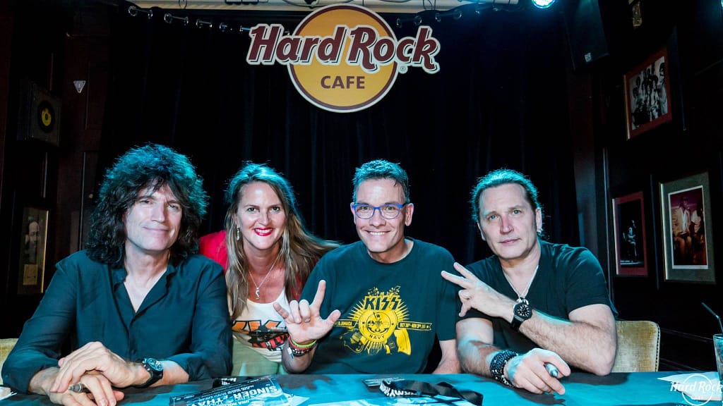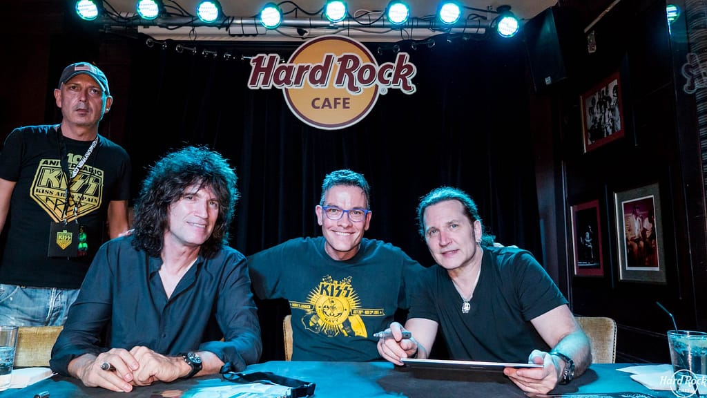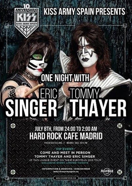 Een geweldig optreden is wederom een feit! WAUW wat een klasse druipte er af van dit optreden! I was made…. later in de set, Psycho Circus en Cold Gin er uit en daarvoor in de plaats Dr. Love. Ik doe het er voor, want als KISS in deze vorm speelt kunnen en mogen ze van mij alles spelen. Dit was wederom een TOP concert! Nog ff langs de Merchandise van KISS, en dan weer terug naar de Hard Rock Cafe Madrid voor de Meet and Greet met Tommy en Eric! Voor de setlist van KISS deze avond, kijk HIER! Na het concert nog naar de Meet and Greet met Eric Singer en Tommy Thayer in Hard Rock Cafe Madrid echt TOP geregeld door de KISS Army Spain! Drankjes ed all inclusive en voor allen een leuk pakketje Merchandising. Goed geregeld jongens! Zo’n 100 man, dat was het maximum want binnen mocht, genieten vanaf 01.30 uur van de aanwezigheid van Tommy en Eric. Echt gaaaaaf! Tommy en Eric zien er beide redelijk vermoeid uit.