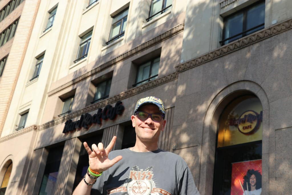 Hard Rock Cafe Madrid, een ontmoetingsplaats van KISS fans. Leuke contacten gelegd en onderhouden met Ierland, Schotland en Zweden! KISS in Wizzink Center Madrid vanavond, dus na het diner op naar Wizink! 1,2 km lopen vanuit de HRC dus lekker ff te voet! Lekker? Tis weer snikheet hier. Samen met Magnus Frediksson uit Zweden naar Wizink gewandeld. Ken hem van de diverse KISS Kruises, leuke gozer en gaaf weer ff gesproken te hebben. KISS is meer dan alleen de muziek, KISS Army is Worldwide friends!