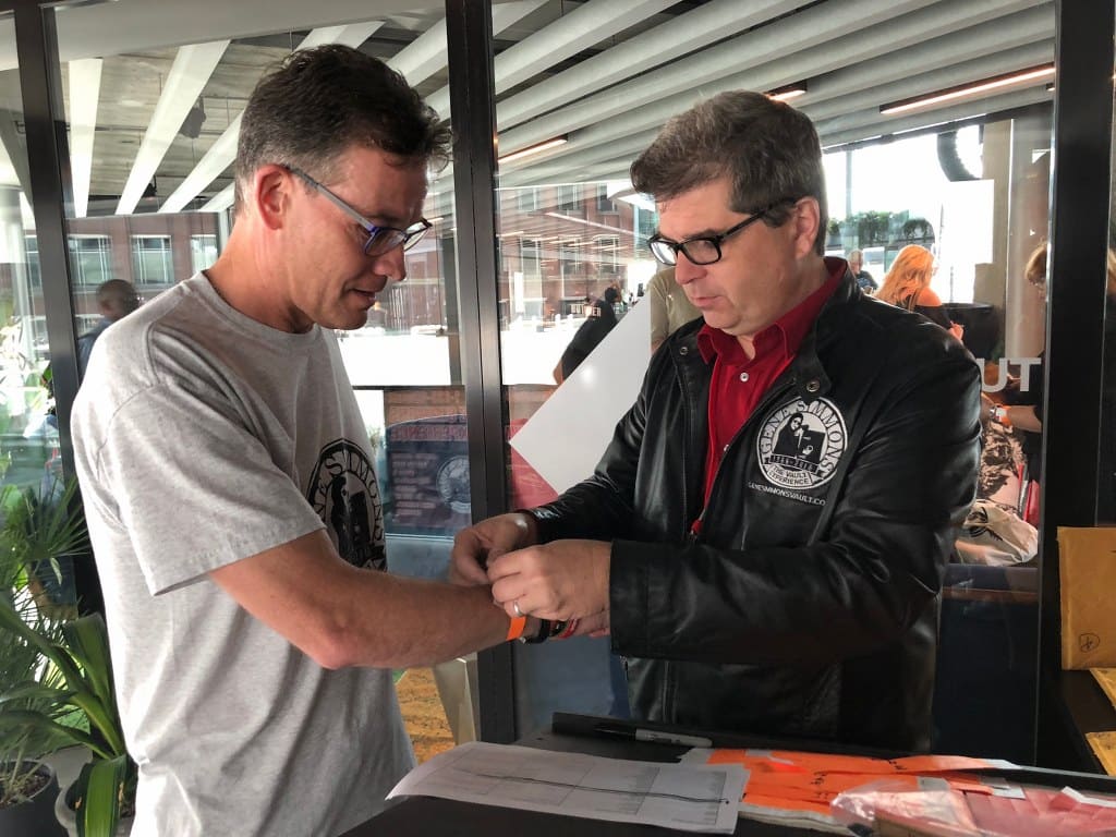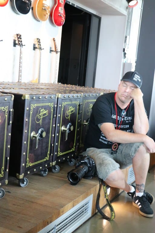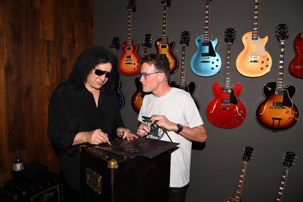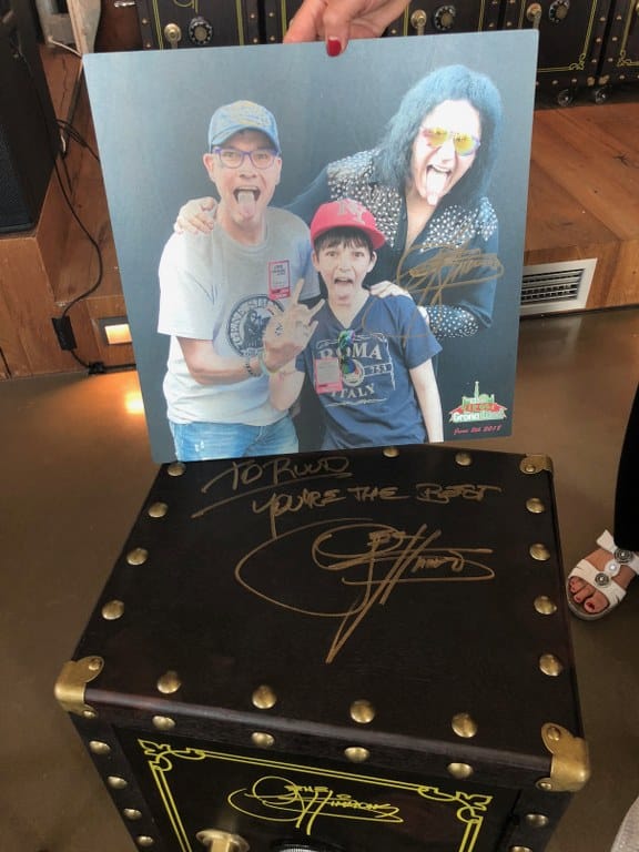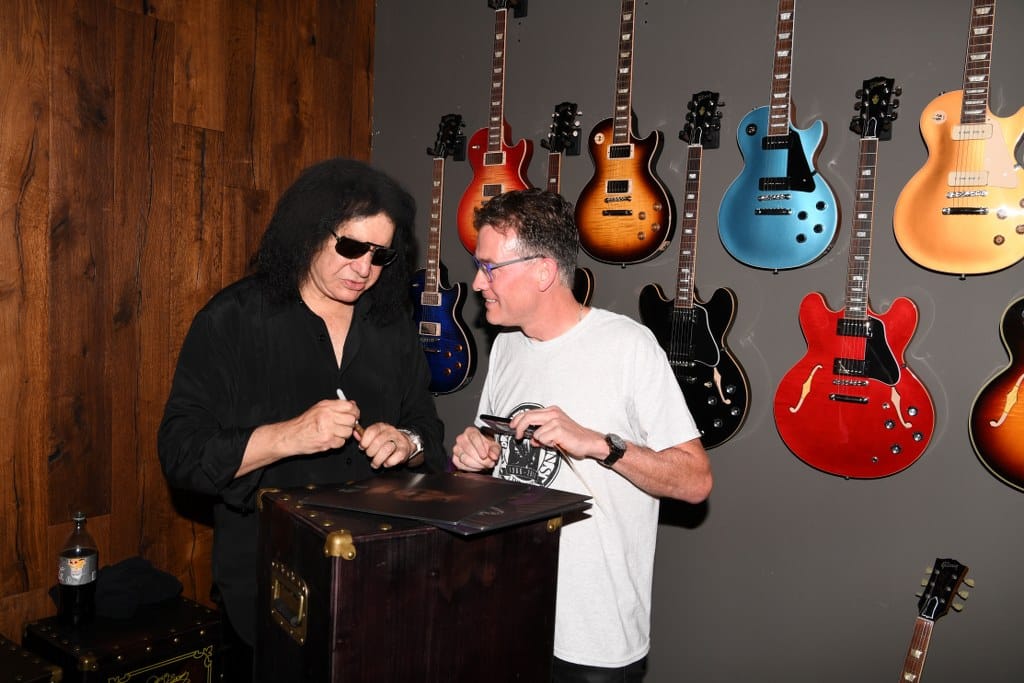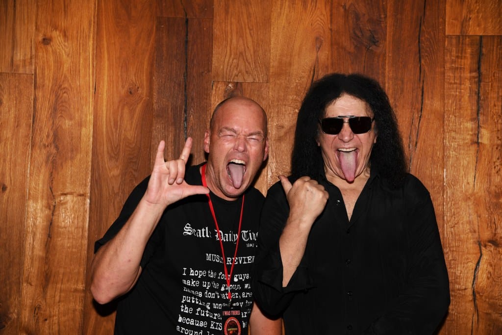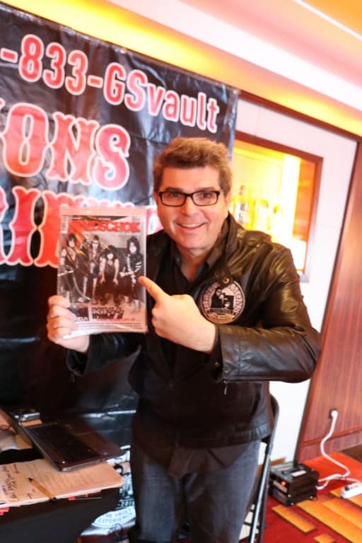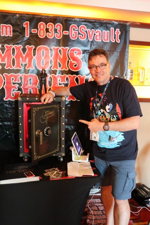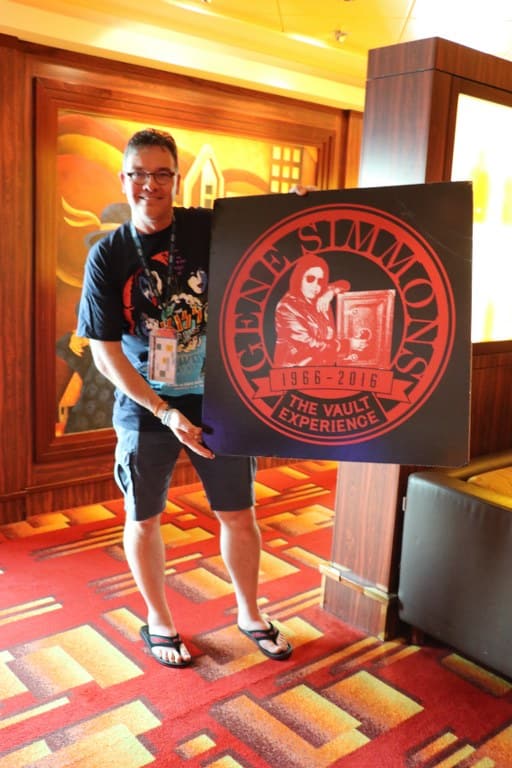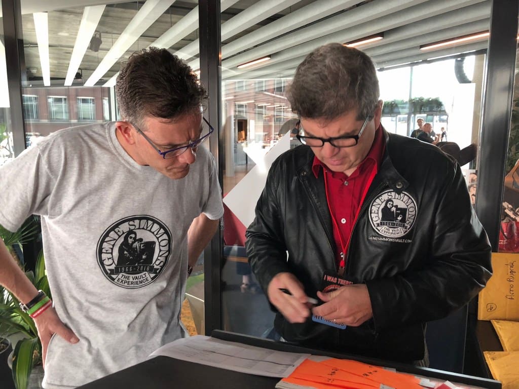 Laten we het dan maar gaan doen, vandaag is DE DAG! Natuurlijk eerst even op de foto met de man: Keith Valcourt. Keith is degene van Rhino Records die Gene helpt en geholpen heeft met het maken van The Vault en gaat met Gene rond de wereld tijdens Gene’s experience’s. Inchecken en bandjes ophalen bij Keith. Nummer 2, dus snel aan de beurt. Niet erg want dan is Gene nog fris en attent.