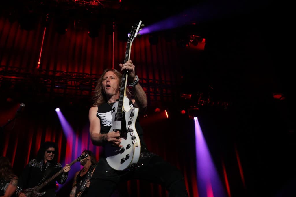Als special guest krijgen we Barry Hay op het podium, natuurlijk bekend van de Golden Earring. KISS heeft in een heeeeeeel ver verleden nog ooit samen met Golden Earring gespeeld in Amerika. Gene kan zich daarvan niet veel meer herinneren. Gene was degene die bloed spuugde op het podium van Golden Earring, leuke verhalen. Voor gene’s geheugen was het toch beter geweest dat hij wat meer bier had gedronken, aldus Barry, die nog een biertje besteld. Een Elvis imitatie, maar heel veel meer leverde deze combinatie niet op. Was leuk maar als Barry er niet was geweest was het event er niet minder op geweest. Natuurlijk is Gene DE man!