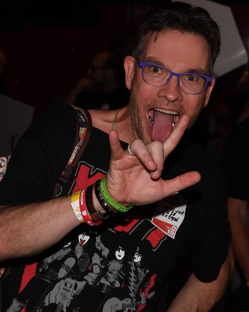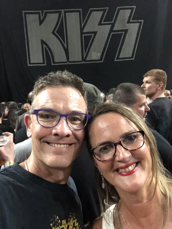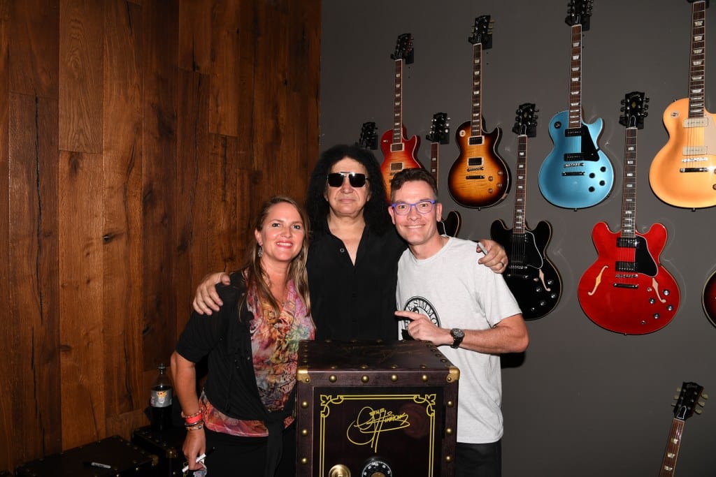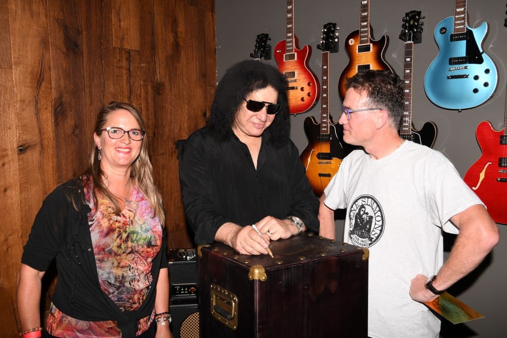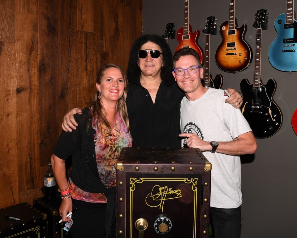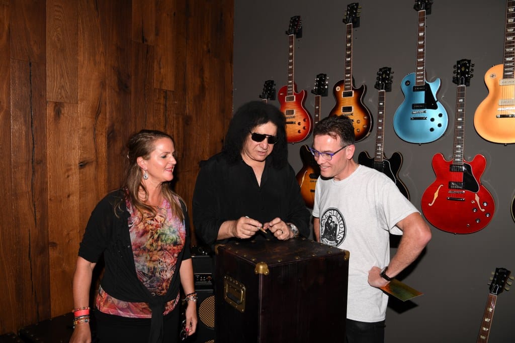 Jolanda ook nog ff op de foto met Mark omdat ik z’n vrouw ook had “geleend” voor een fotootje! KISS bende uit Brabant in de Gibson Room, wat een geweldige locatie voor een Gene event! #Knuffelbeertje Sander!