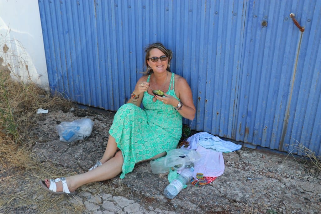 Lunchpauze, is hetzelfde als schaduw opzoeken. Die vinden we tijdens onze “onderweglunch” tegen een schuurdeur aan! We rijden door een prachtige wijnstreek, ontzettend veel en mooie wijngaarden!