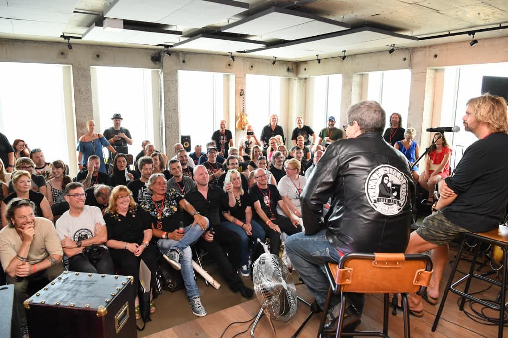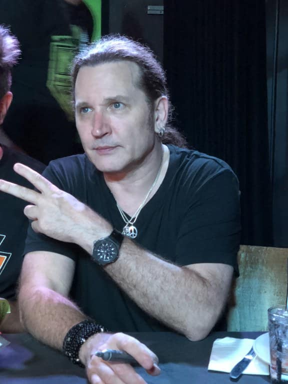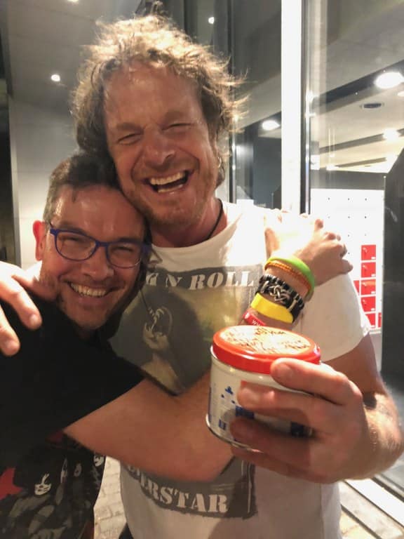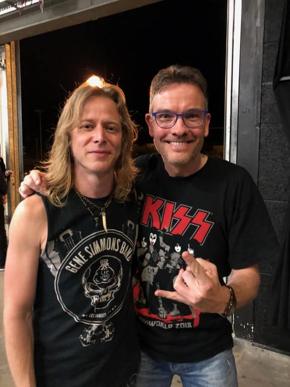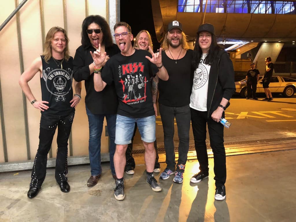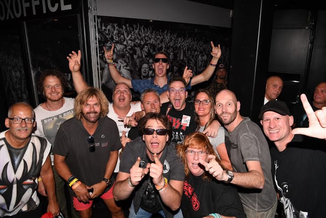 Samen met Canadese drummer of Gene’s Band: Brent Fitz. Wat een GEWELDIGE avond, Luxemburg was Grandioos, Tilburg was Goed en Oberhausen was Uitmuntend/Mega! Wat te denken van oa. Domino, Almost Human, Going Blind, Ladies Room e.d. Soms krijg je kippenvel ook als je bijna 49 jaar (jong) bent! Wat een setlist!! Kijk HIER voor het complete overzicht. Na de show zijn we wederom uitgenodigd (meer dan dank Ryan!!!) voor de Meet and Greet met de gehele band. Foto door Gino van Lancker, waarvoor mijn dank. Gino doet oa veel fotowerk voor Rock Tribune uit België. Gino heeft samen met een reporter van Rock Tribune nog een interview met Gene. We wachten dus nog even om hun verhalen nog aan te horen. Rond 02.00 uur gaan we richting ons Hotel, wederom een latertje!