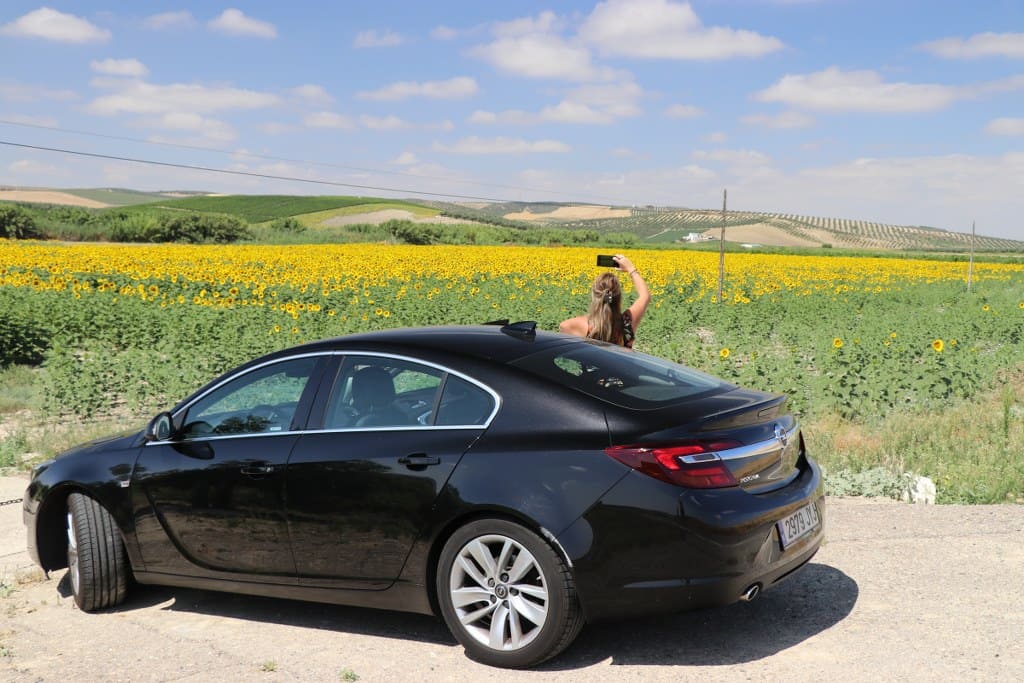 15 juli: Laatste goedemorgen vanuit onze prachtige Parador in Carmona! Yep, we verlaten Carmona weer en gaan door naar Granada. Bye bye Parador! Bye bye, prachtige Carmona! Van Carmona naar Granada, tienduizenden olijfbomen……..Zonnebloem fotoshoot part 2! Schitterend veld met open, i.p.v. hangende, zonnebloemen gevonden dus d’n auto uit!