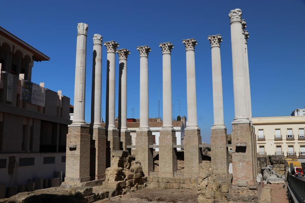 Daarna, rond 17.30 uur, toch maar eens Cordoba in. Wat al heel snel opvalt dat dit echt een heel schitterend stadje is! Zeker gaver dan Madrid en Barcelona, ook een stuk kleiner. De Romeinen hebben hier zeker zijn invloeden achtergelaten, de voorgaande foto’s waren van een oude Romeinse Kathedraal en hieronder nog wat oude maar gerestaureerde resten van Cordoba Roman Temple.