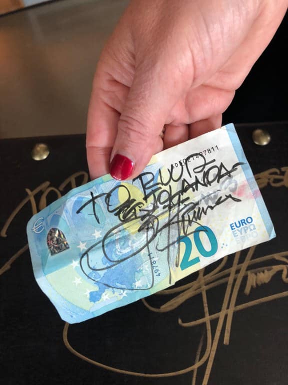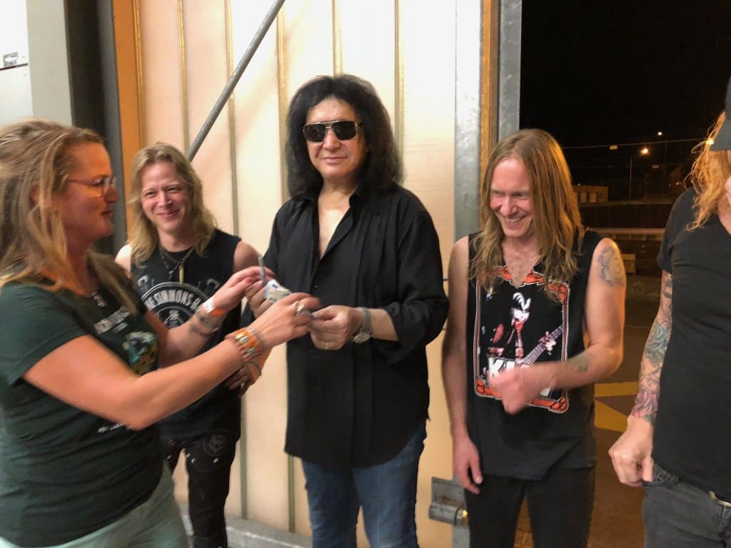 Alvorens Rock and Roll alle night in te zetten moet Jolanda meezingen van d’n Gene! YEAH! Gene gaat zijn geld uit zijn zak halen en geeft Jolanda 20 euro voor haar inzet, GEWELDIG! En niet te vergeten, Gene die geld weg geeft! Jolanda heeft nog papiersnippers in haar broekzak zitten van de KISS show in Cordoba! Die gooit over het podium en Gene moet lachen “you’re crazy” als we hem vertellen dat die snippers van de show uit Cordoba komen. “I have to sue you”, YEAH Gene! Tevens vraagt Gene aan mij wie ik ben “Ruud from Holland”, hij houdt een hele preek over wat Ruud betekend in Australië. Echt lachen, ik hoop dat iemand dit gefilmd heeft!? Na de show is er een SUPER RELAXTE Meet and Greet met de band. Zo’n 25 personen dus niet te druk, wij zijn als laatste en iedereen heeft tijd genoeg voor ons. Even een stift regelen want natuurlijk laten we Gene zijn eigen 20 euro tekenen, dit briefje geven we NOOIT meer uit! WAUW!