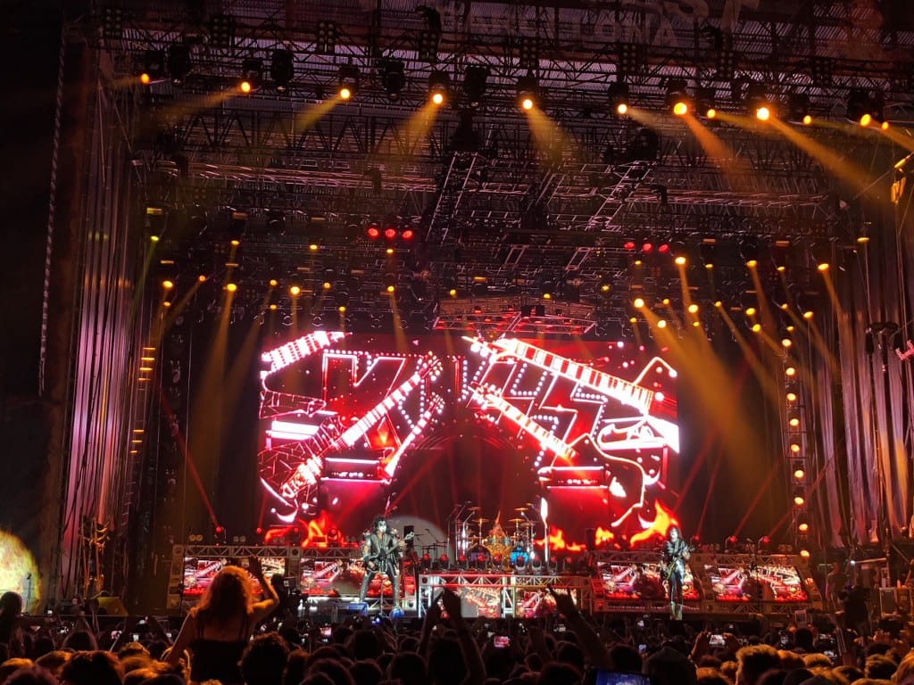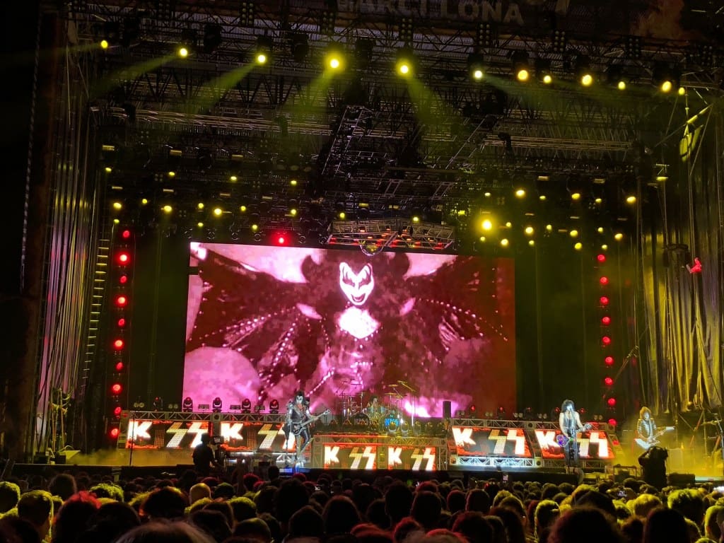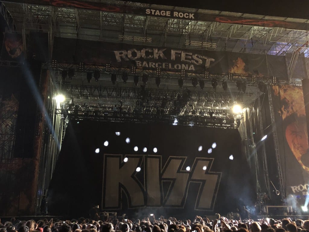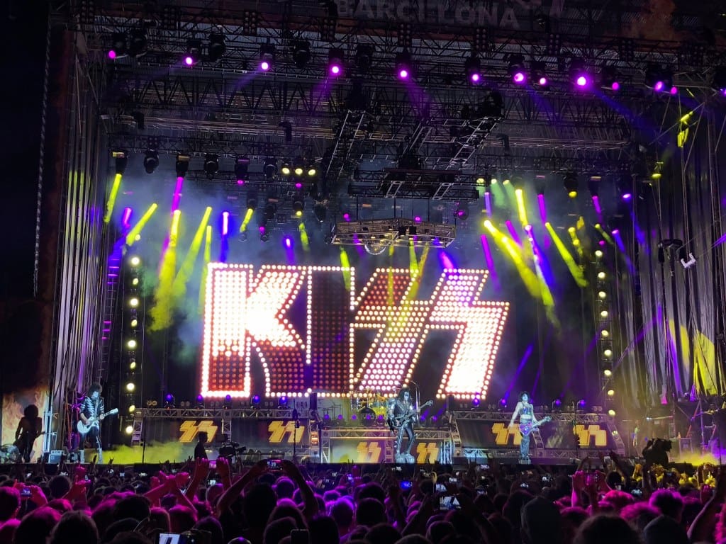 Even een hapje en drankje! Het is inmiddels donker geworden, de zon weg, nog steeds ruim 25 graden maar voelt nu aan als koel! We kijken de Scorpions aan de kant van Stage Rock, zodat we meteen goed staan voor KISS. Wat kunnen we nog zeggen over de Scorpions? Leuke bandje, misschien de beste tijd gehad maar ze krijgen Barcelona Rock Fest wel aan hun voeten met alle klassiekers die we kennen van hun. Toch een leuk optreden! Setlist van de Scorpions: Kijk HIER. Het is inmiddels 24.00 uur geweest en het aftellen naar KISS is nu serieus begonnen. “HET DOEK” wordt opgehaald om zo weer te zakken. Blij dat KISS bijna gaat beginnen want wij zijn inmiddels zwaar gesloopt van een lange dag staan en de hitte. Blijft toch ook na 52 keer (dit is mijn 53ste KISS concert!) weer een kippenvel moment als ALLRIGHT BARCELONA……… uit de speakers knalt! KISS komt, zoals we kennen van eerdere shows, op een klein plateau afzakken uit de lichtshow. Het is meteen duidelijk dat DE HEREN er weer zijn! Deuce als opener, kan eigenlijk niet beter! Alhoewel “I stole your love” in 1992 ook een super opener was! Gelukkig wordt het geluid gedurende het optreden steeds beter, tijdens het “knalnummer” Deuce knalt het namelijk nog niet echt (zang staat veel te hard en de gitaarpartijen van Paul en Tommy staan te zacht, daarentegen beukt de bas van Gene zoals het hoort). Festival perikelen! Vandaar mijn voorkeur altijd naar de indoorshows!