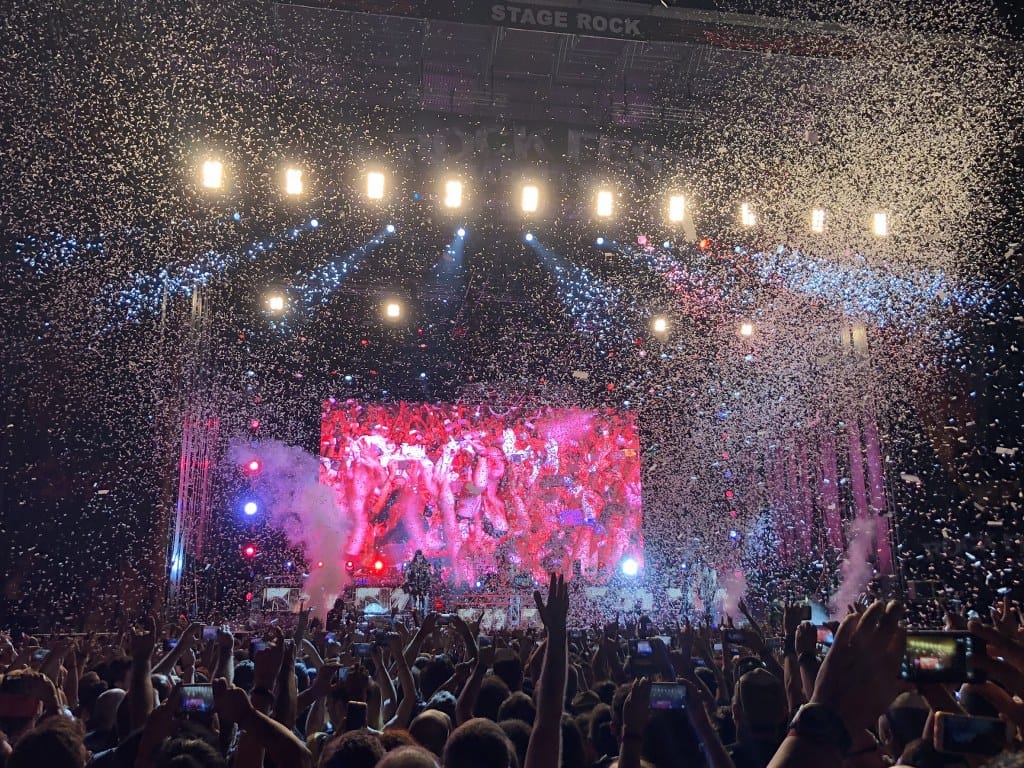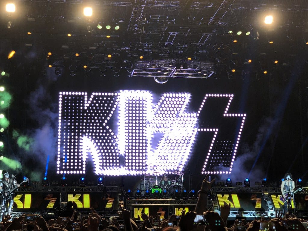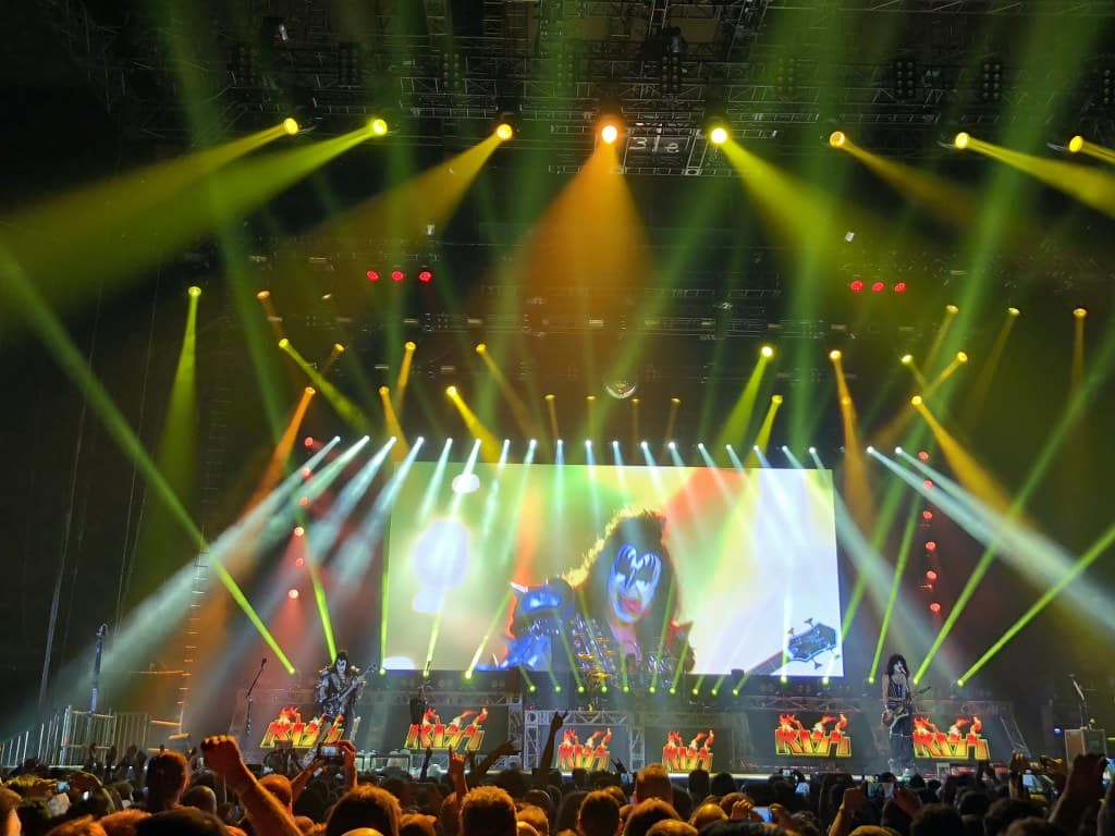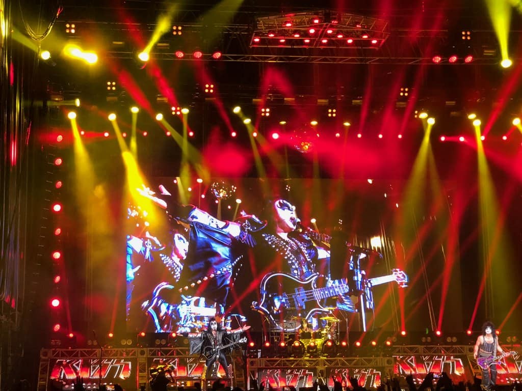 Even een hapje en drankje! Het is inmiddels donker geworden, de zon weg, nog steeds ruim 25 graden maar voelt nu aan als koel! We kijken de Scorpions aan de kant van Stage Rock, zodat we meteen goed staan voor KISS. Wat kunnen we nog zeggen over de Scorpions? Leuke bandje, misschien de beste tijd gehad maar ze krijgen Barcelona Rock Fest wel aan hun voeten met alle klassiekers die we kennen van hun. Toch een leuk optreden! Setlist van de Scorpions: Kijk HIER. Het is inmiddels 24.00 uur geweest en het aftellen naar KISS is nu serieus begonnen. “HET DOEK” wordt opgehaald om zo weer te zakken. Blij dat KISS bijna gaat beginnen want wij zijn inmiddels zwaar gesloopt van een lange dag staan en de hitte. Blijft toch ook na 52 keer (dit is mijn 53ste KISS concert!) weer een kippenvel moment als ALLRIGHT BARCELONA……… uit de speakers knalt! KISS komt, zoals we kennen van eerdere shows, op een klein plateau afzakken uit de lichtshow. Het is meteen duidelijk dat DE HEREN er weer zijn! Deuce als opener, kan eigenlijk niet beter! Alhoewel “I stole your love” in 1992 ook een super opener was! Gelukkig wordt het geluid gedurende het optreden steeds beter, tijdens het “knalnummer” Deuce knalt het namelijk nog niet echt (zang staat veel te hard en de gitaarpartijen van Paul en Tommy staan te zacht, daarentegen beukt de bas van Gene zoals het hoort). Festival perikelen! Vandaar mijn voorkeur altijd naar de indoorshows!