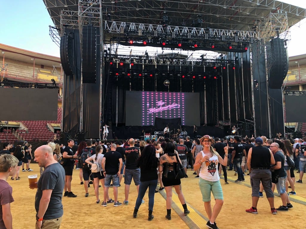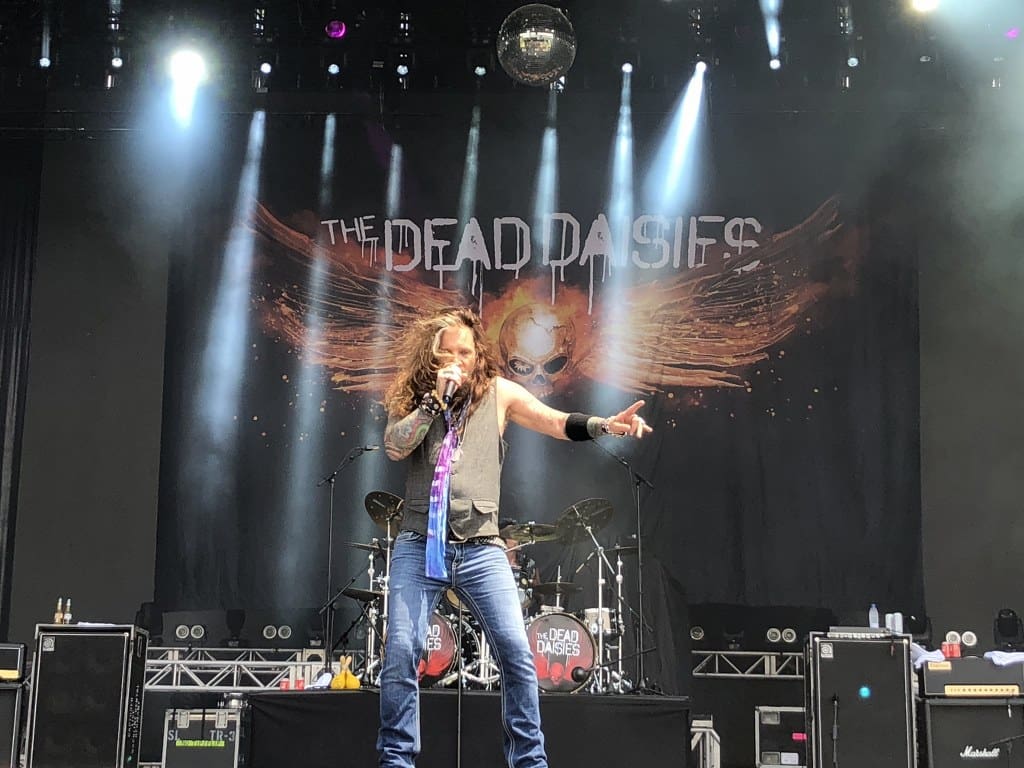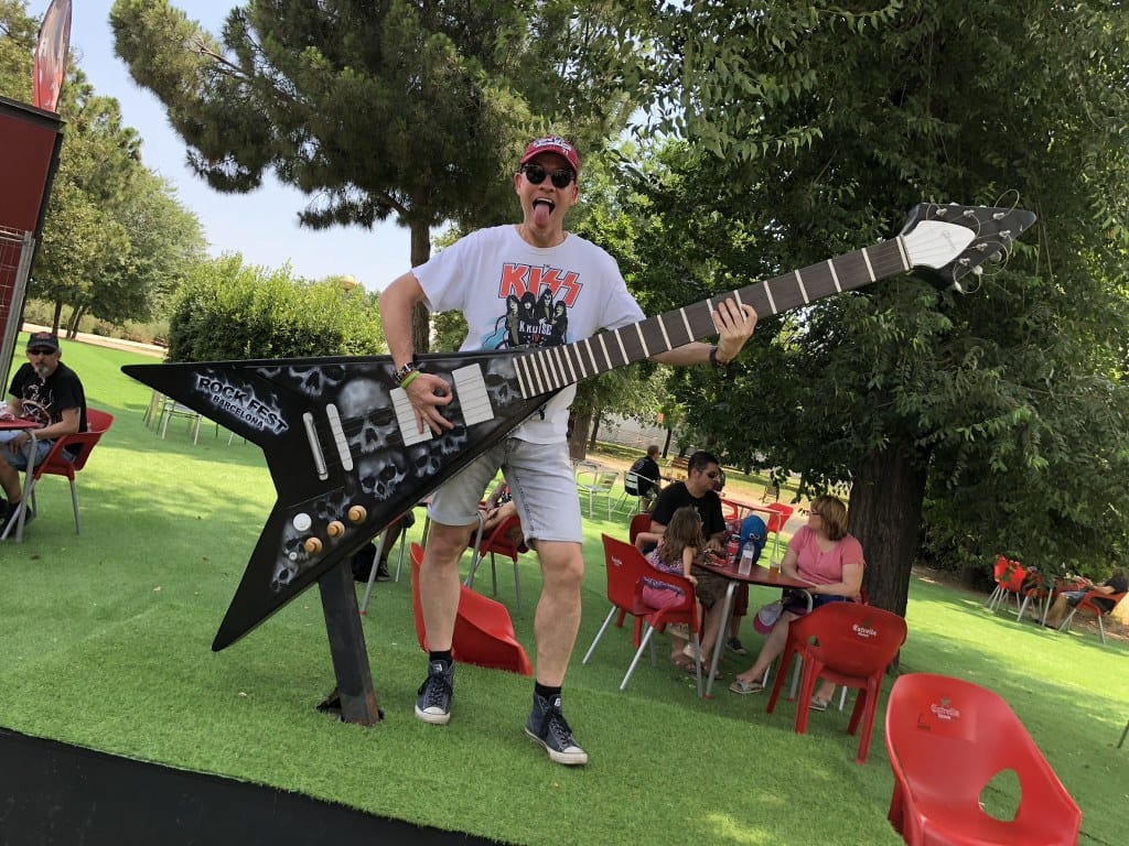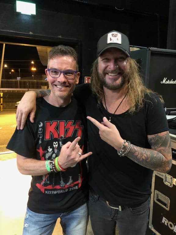 KISS is meer dan alleen de muziek, het is vriendschap worldwide! Zie hieronder: KISS Kruisers uit Noorwegen en België, vandaag ook in Spanje! Jonny, Luc en Kenneth het was weer een waar genoegen om jullie weer te ontmoeten! We gaan elkaar vast ook in Madrid weer zien! HOPPA! Als eerste zien we The Dead Daisies een puike set afvuren op de menigte. De handjes gaan goed op elkaar bij het Spaanse publiek, al is het ketsheet zo pal in de zon. We kennen de Daisies inmiddels al enkele jaren van hun “verbinding” met KISS en de diverse KISS Kruises. En dat het Rocksterren zijn dat weten we al en laten ze graag zien, he Marco!