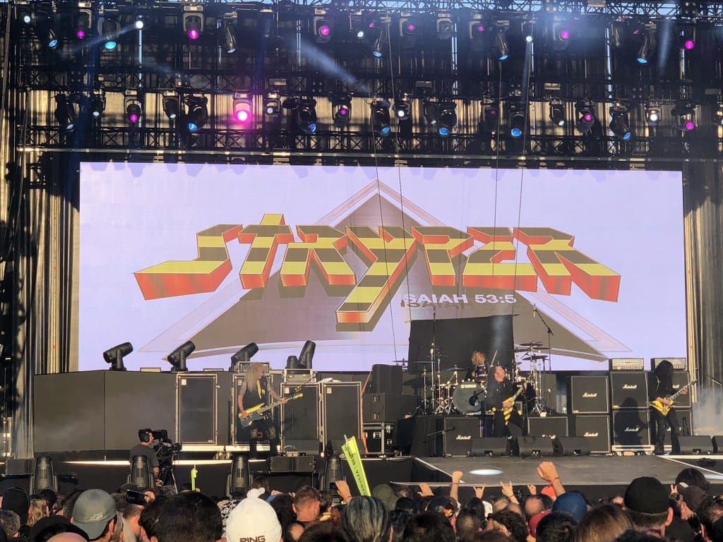 Na de hamburger is het tijd voor Stryper, wat ooit een Rock bandje was is heden ten dagen een serieuze METAL band geworden. Wat een super strakke en MEGA VETTE setlist die Stryper afwerkt. In 1987 waren ze headliner op Dynamo Open Air, de tweede editie op de parkeerplaats bij Dynamo in Eindhoven, nu op Barcelona Rock Fest. Maximaal genoten, tot zover de beste band van vandaag! TOP! Jolanda sluit aan bij de laatste minuten van Stryper, heeft nog ff lekker relaxed in het gras gelegen. Een volledige dag HEAVY METAL is best heftig voor een “beperkt liefhebber”. Na Stryper is het direct aanschuiven voor Megadeth, we kennen Dave en de boys inmiddels door en door. Het geluid staat wat aan de zachte kant en de gitaren te ver naar achteren in de mix. Niet getreurd, het is altijd smullen van een setje Megadeth! Klassiekers en METAL zoals METAL hoort te zijn! Gelukkig staat Megadeth morgen in Madrid en woensdag in Cordoba in het voorprogramma van KISS, dus we mogen nog twee keer genieten van Megadeth, YEAH! Sometimes life is real bad……….