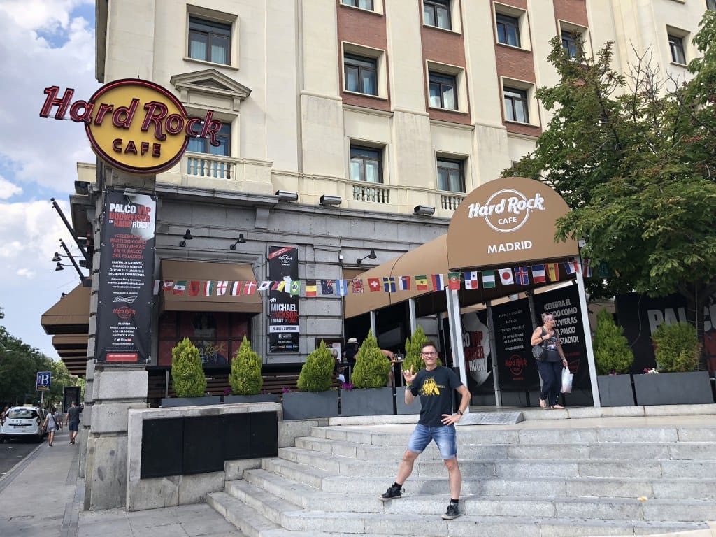 8 juli: GOEDEMORGEN Barcelona, maar niet echt, wij zijn nog gesloopt! Echt veel te kort geslapen en een dagje festival hakt er in, gebroken! Na ons ontbijt gaan we rond 11.00 uur naar het treinstation Sants. Vandaag met de trein van Barcelona naar Madrid en dus Barcelona alweer verlaten! Om 12.00 uur zijn we weg naar Madrid. Even bijkomen in de trein en tijd om dit blog verder uit te type! Rond 15.00 uur arriveren we in Madrid, echt goed te doen zo’n treinreisje. Wellicht sneller er en beter dan vliegen? We slapen de komende drie nachten in Hotel Liabeny, alwaar we netjes met de taxi voor de deur afgezet worden. Een erg goed hotel, echt midden in het hart van Madrid. Tijd om Madrid te verkennen hebben we vandaag niet, dat staat gepland voor morgen en overmorgen. Op naar de Hard Rock cafe in Madrid voor diner maar eerst een koffie bij de Starbucks. Ruud in het Spaans of zoiets…….