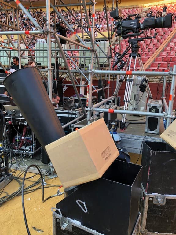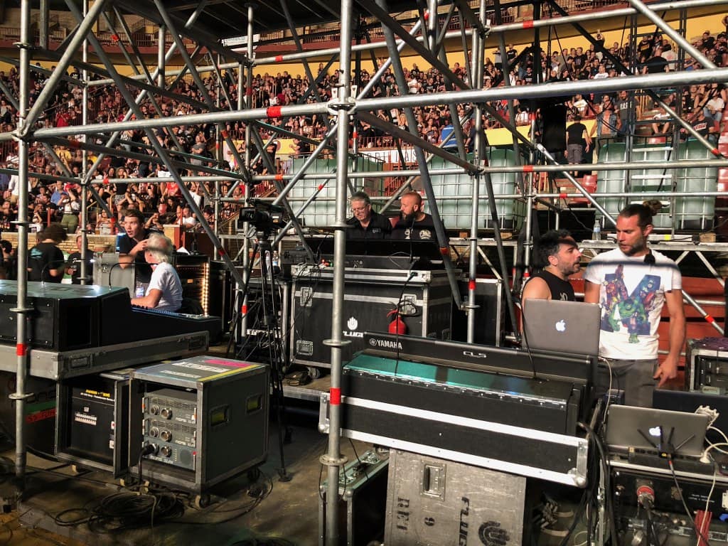 Binnen aangekomen lijkt het allemaal niet zo heel erg groot, gelukkig! We staan voor de meng- en lichttafel en kunnen het vanuit daar meer dan prima zien. We blijven hier dus staan. WAUW, super vet dat we KISS op deze erg bijzondere locatie mogen aanschouwen, GEWELDIG!