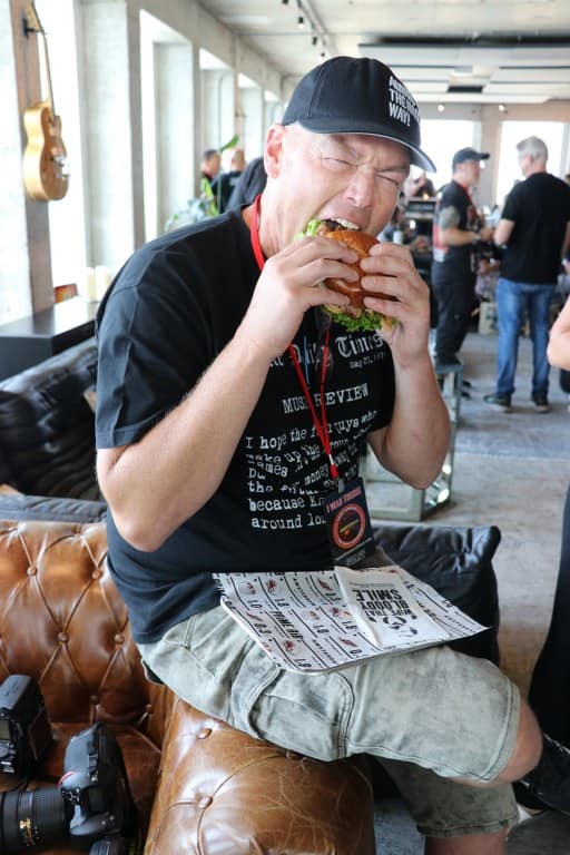 Cooling-down, the Legendary God of Thunder Burger! Alleen vandaag te bestellen, GEWELDIG! Nog even nababbelen met iedereen, en natuurlijk onze geweldige fotograaf Stefan! Wat een middag! Bye Bye Gene! Het waren een aantal gave weken met KISS, Gene Simmons Band, Meet and Greets en natuurlijk The Vault. Gene roept nog een keer richting mij “Ruud Beer”, dank je Gene! Deze middag zal Ruudje NOOIT vergeten!