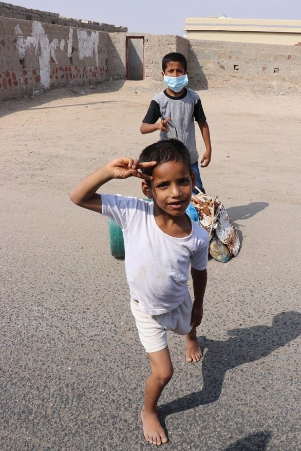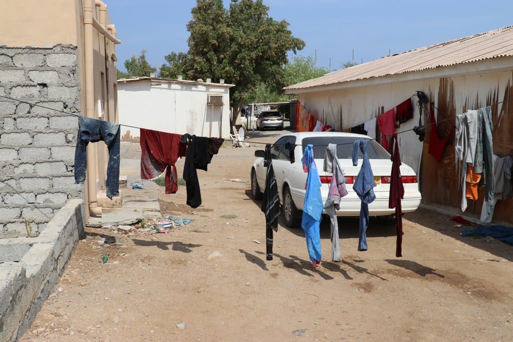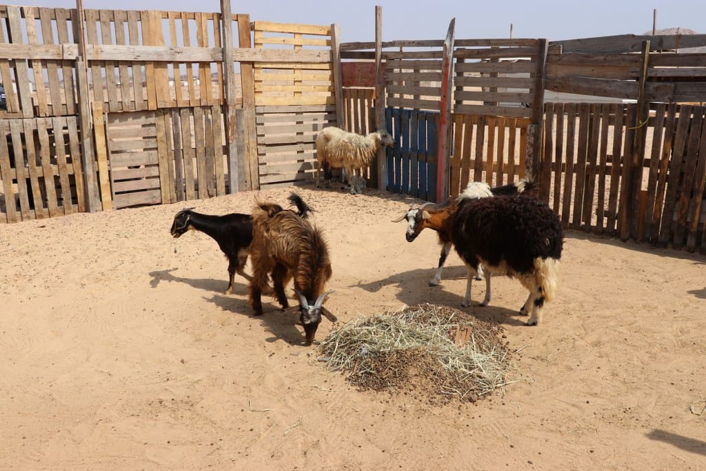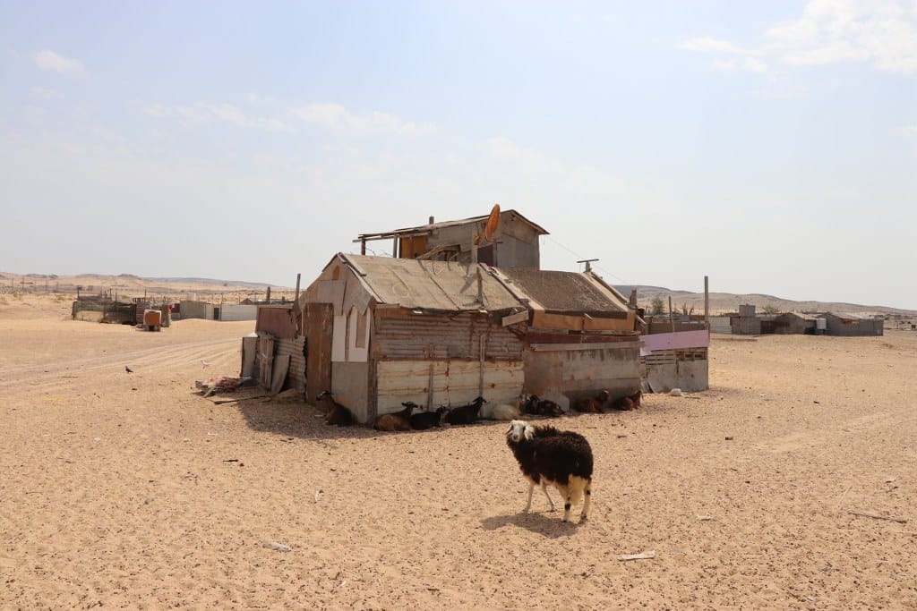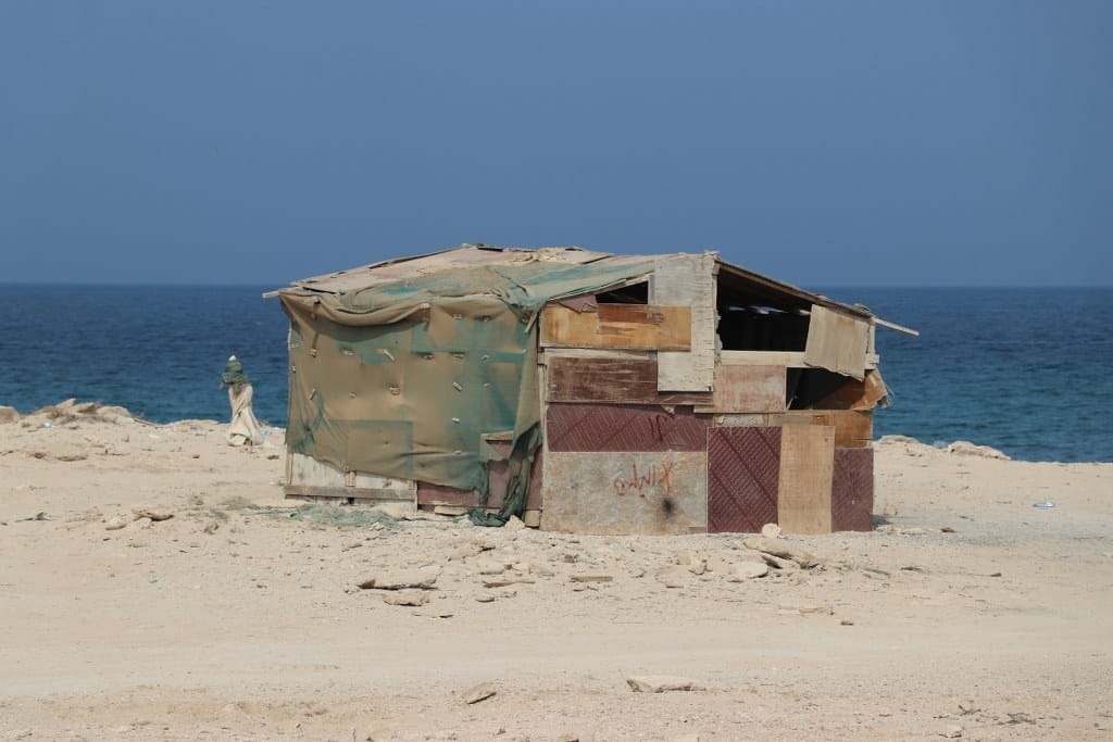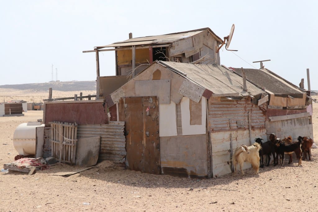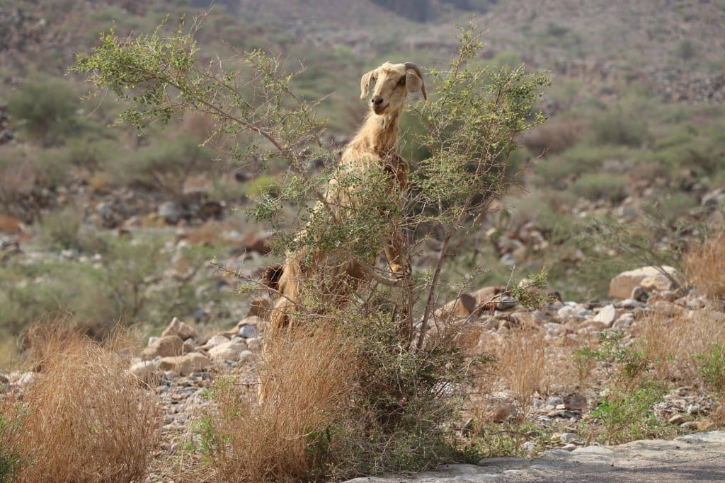 Onderweg zien we op diverse plaatsen een soort van krotjes met hekwerkjes staan in het zand, we denken in eerste instantie aan krottenwijkjes. Er op af dus om nader te onderzoeken, wat is dit? Helder! Dit zijn geitenherders die daar hun geiten laten jongen. Gelukkig treffen we en tweetal herders aan en we vragen of we hun “geitenverblijf” eens mogen bekijken. Omani zijn super vriendelijk dus het antwoord is: JA Helaas is hun Engels erg beperkt maar we krijgen een goed beeld van deze verblijfjes, cq dorpjes waar meerdere herders hun kampen op hebben geslagen. De jonkies worden netjes aan ons getoond en foto’s zijn geen probleem.