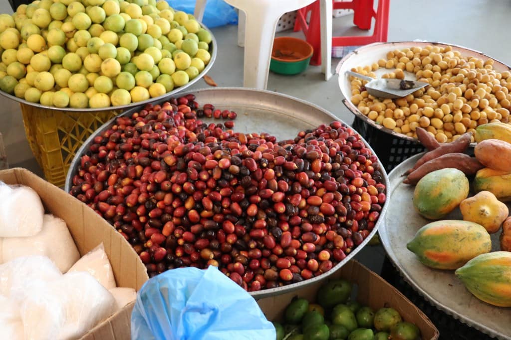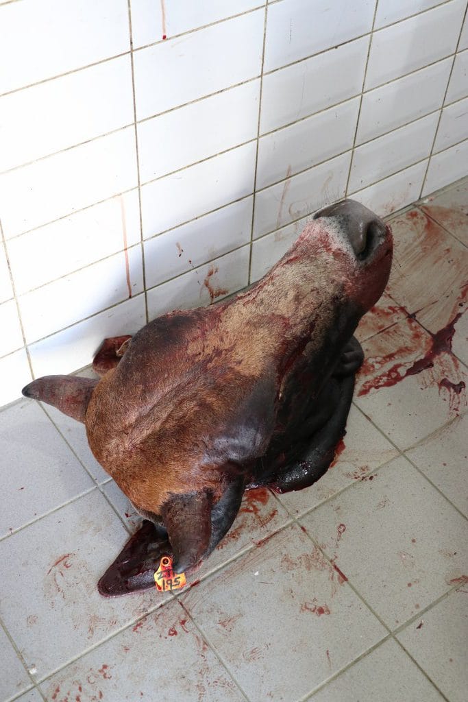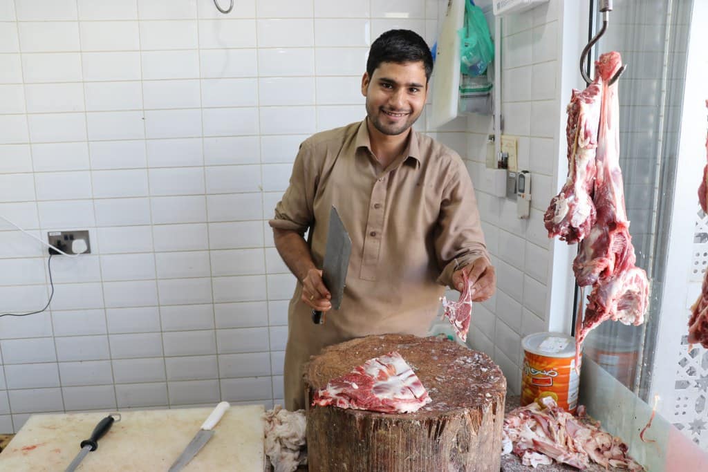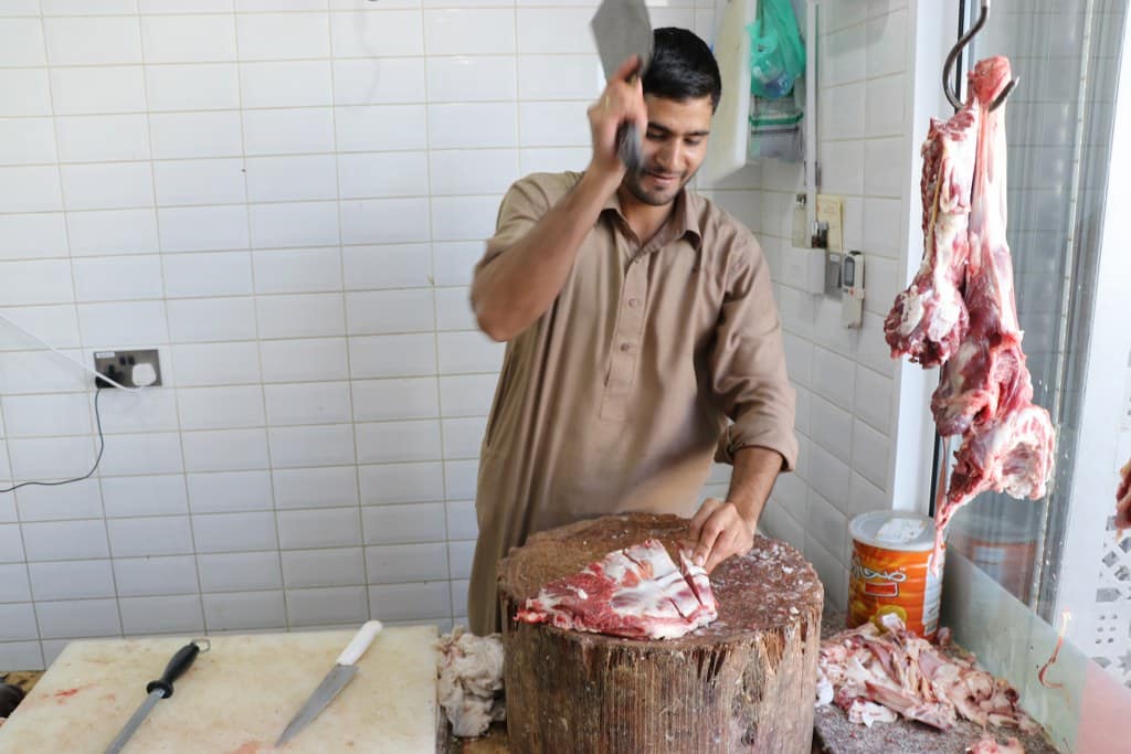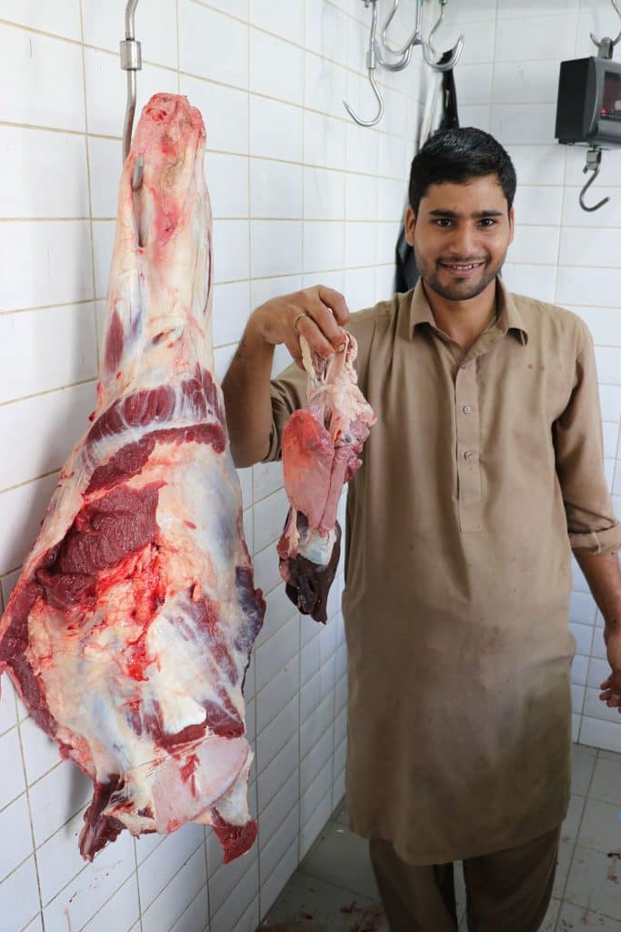Op het “vlees” gedeelte, vragen we aan de “slager” of we even in zijn hokje binnen mogen komen voor wat plaatjes! Vriendelijke mensen hier dus JA. Gewillig laat de slager zijn vleeswaren en ingewanden zien van de pas geslachte koe, met bloed onder onze schoenen verlaten we de afdeling vlees weer!