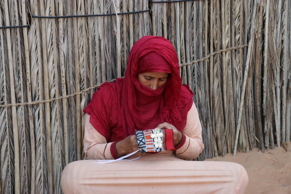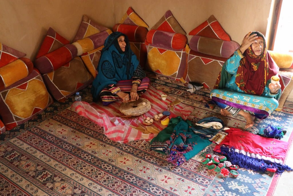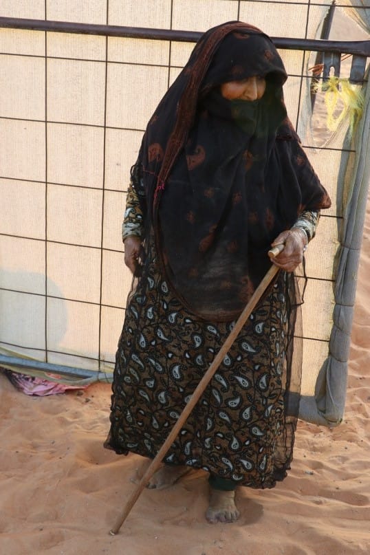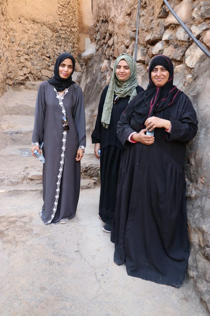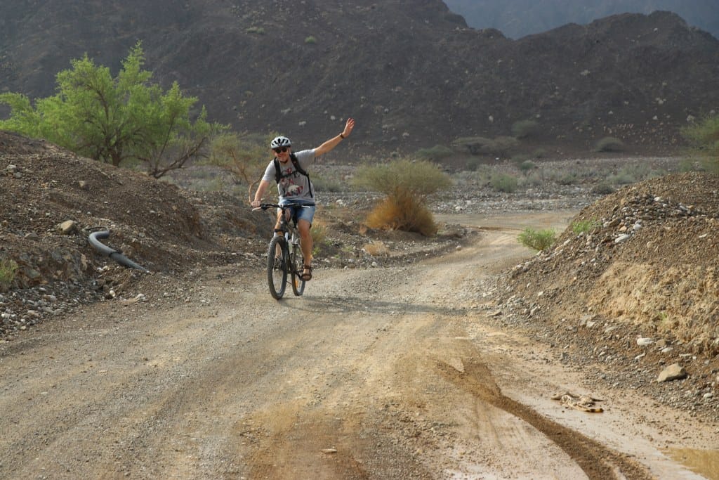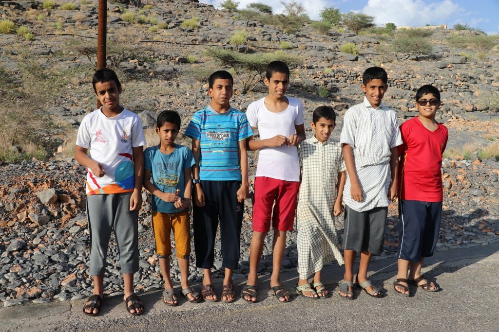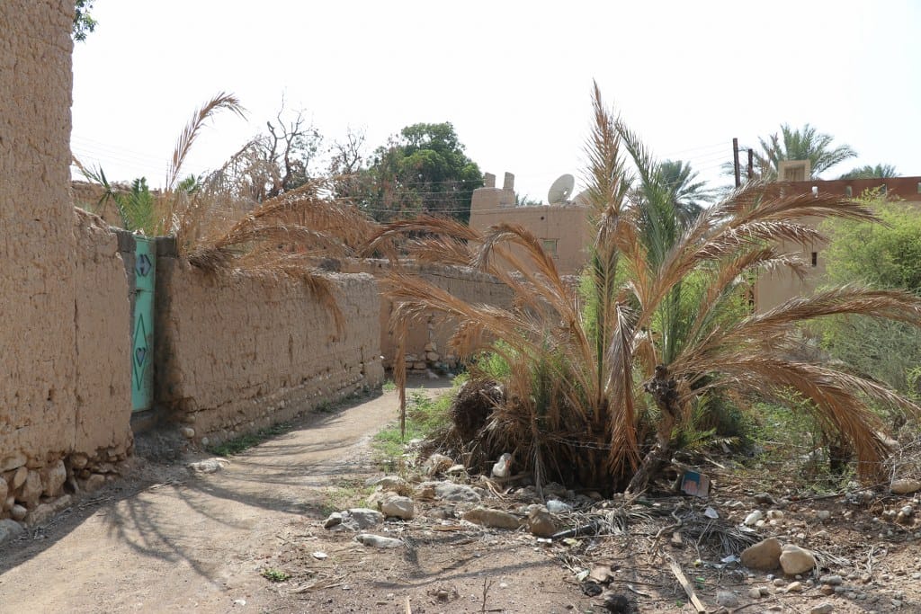 man die toevallig voorbij komt, op zijn fiets, wordt door een van dames aangehouden zien we op een afstand. Zij willen ook een stukje fietsen, kennelijk toch iets wat voor ons heel normaal is maar hier zeer zeker niet. Fietsen zit niet in het Oman DNA. Ze vindt het hoedje van Jolanda helemaal geweldig en vraagt of ze dat een keer op mag, voor foto op haar mobiel. Dat mag, uiteraard knippen wij ook.
