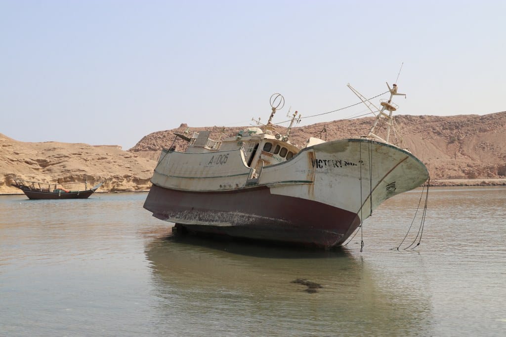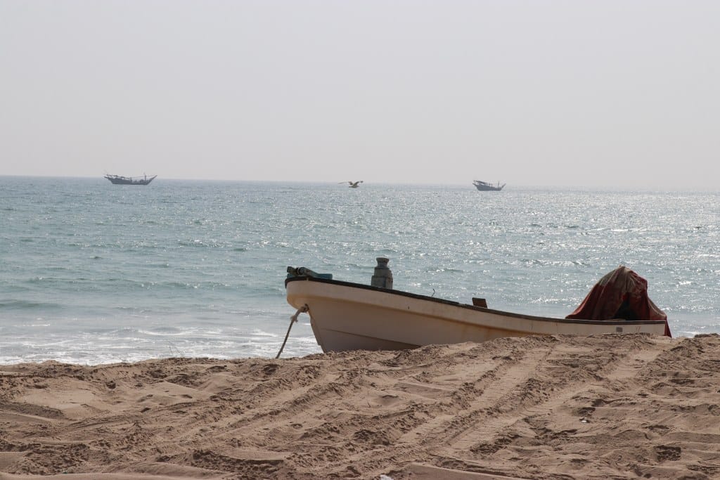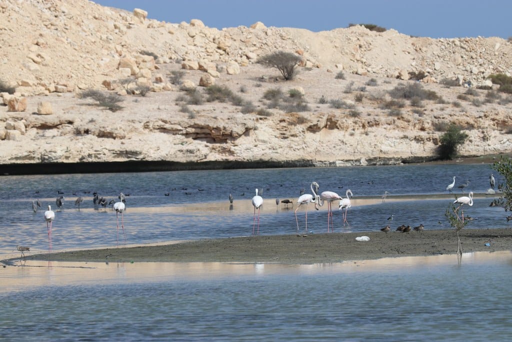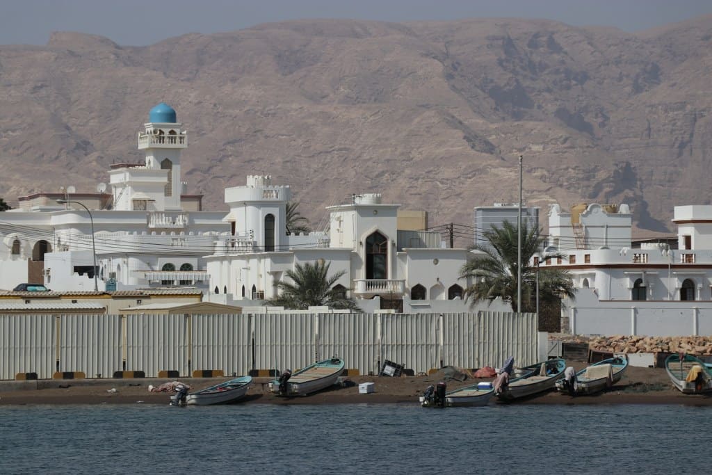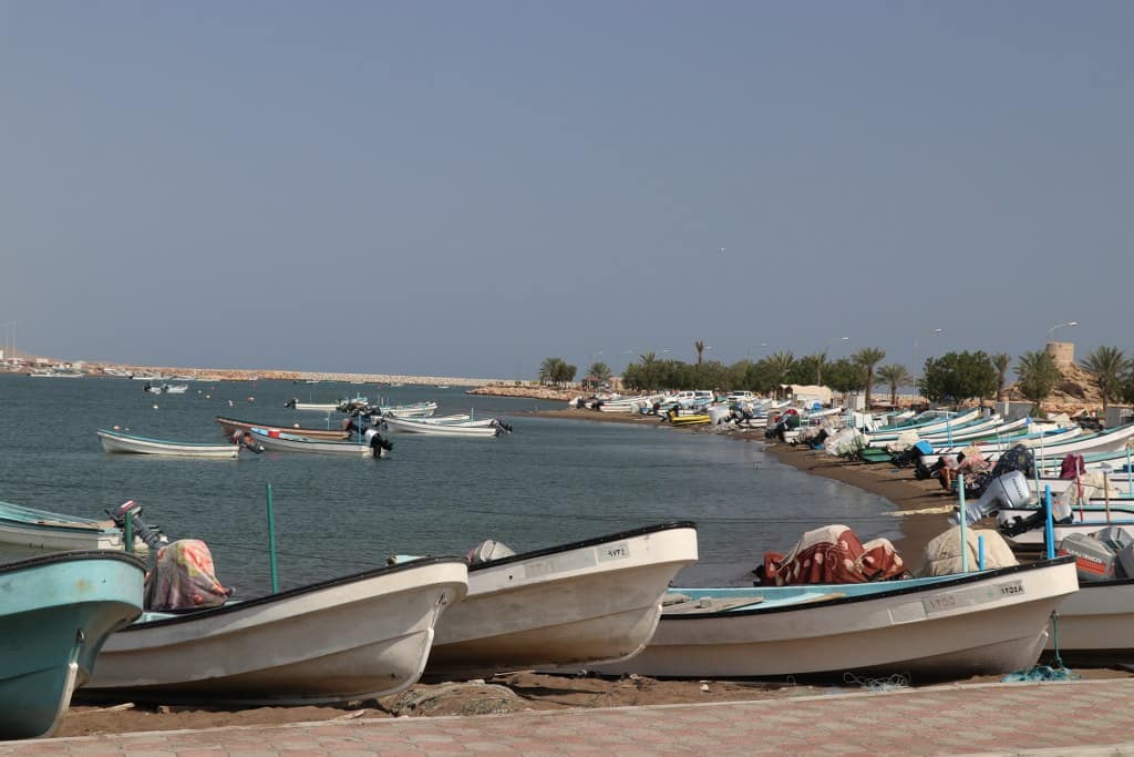 We verlaten de weg richting Sur in Qurayyat, in de mangrovebossen zitten kennelijk regelmatig flamingo’s. Een leuk plaatjes waar we eerst even de lokale supermarkt bezoeken! Water, water, water………. Visserbootjes genoeg in Qurayyat.