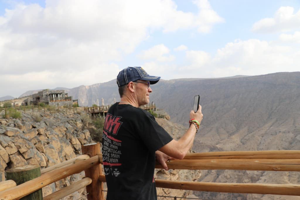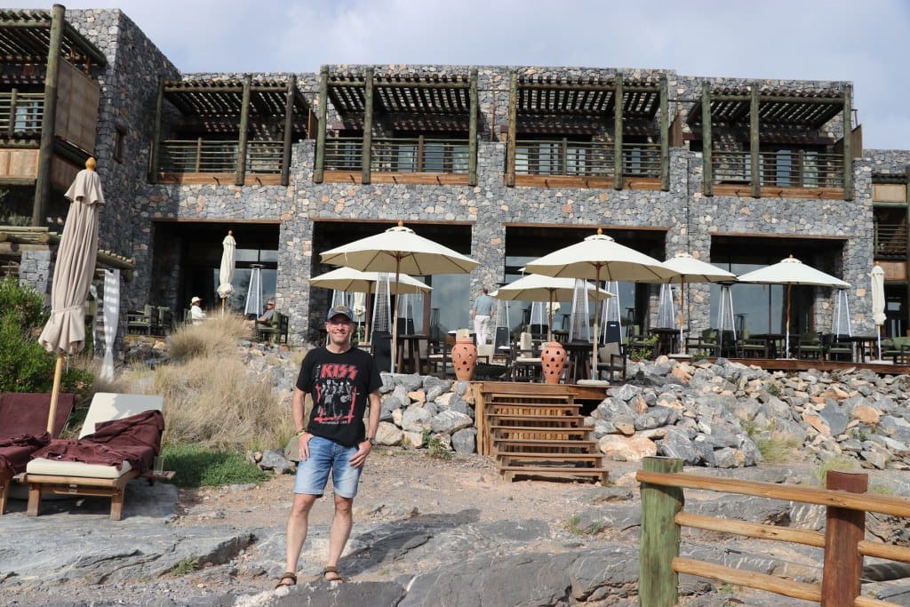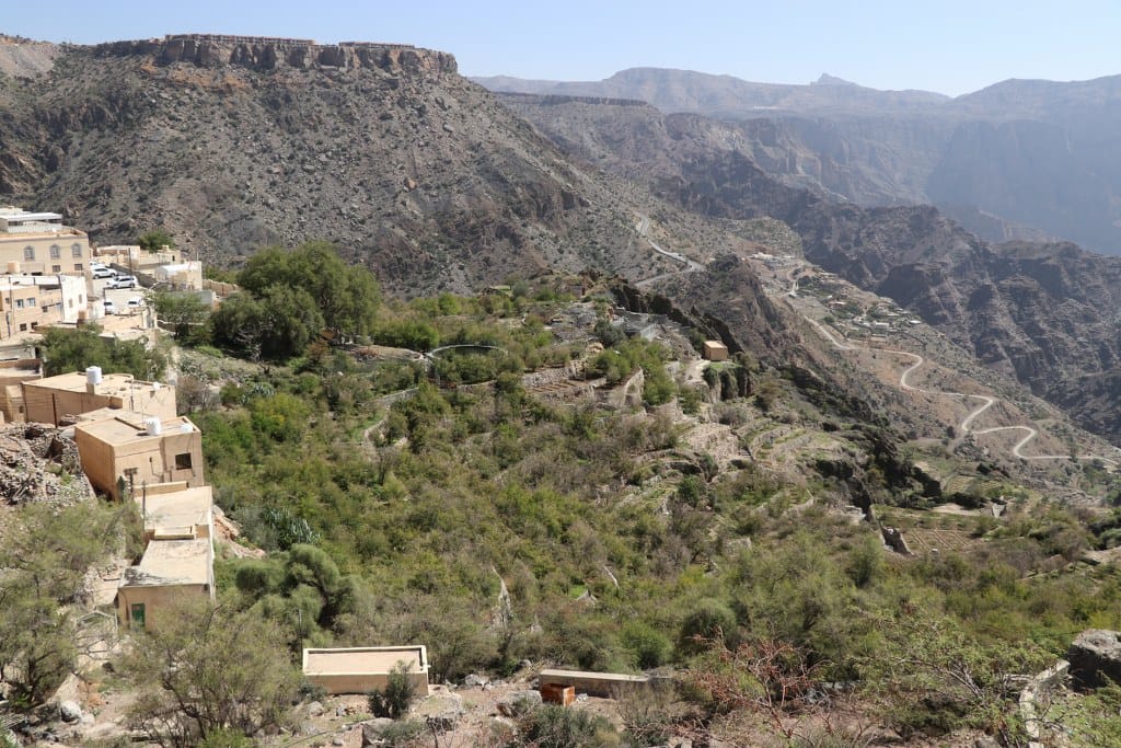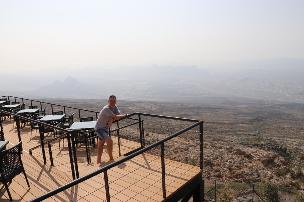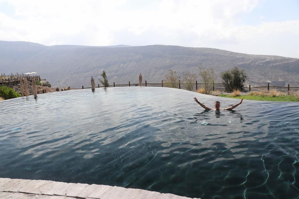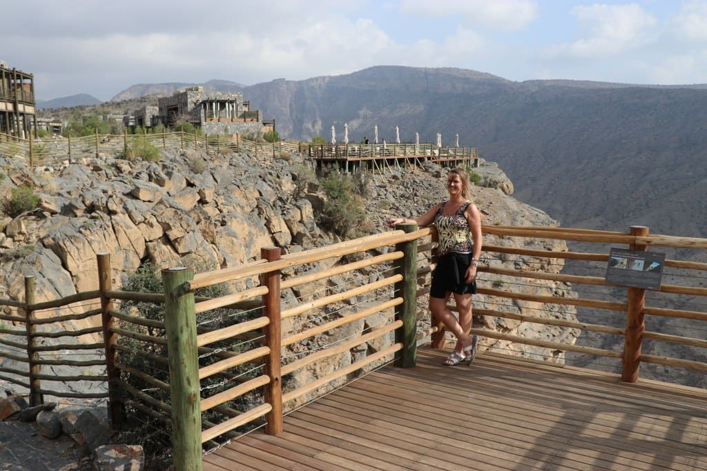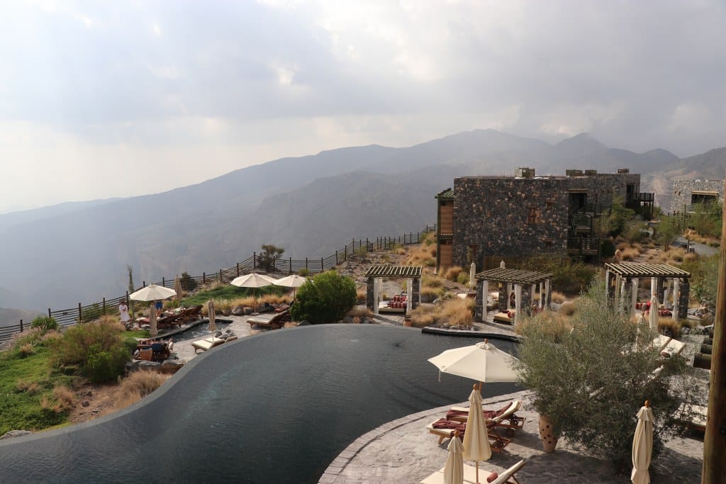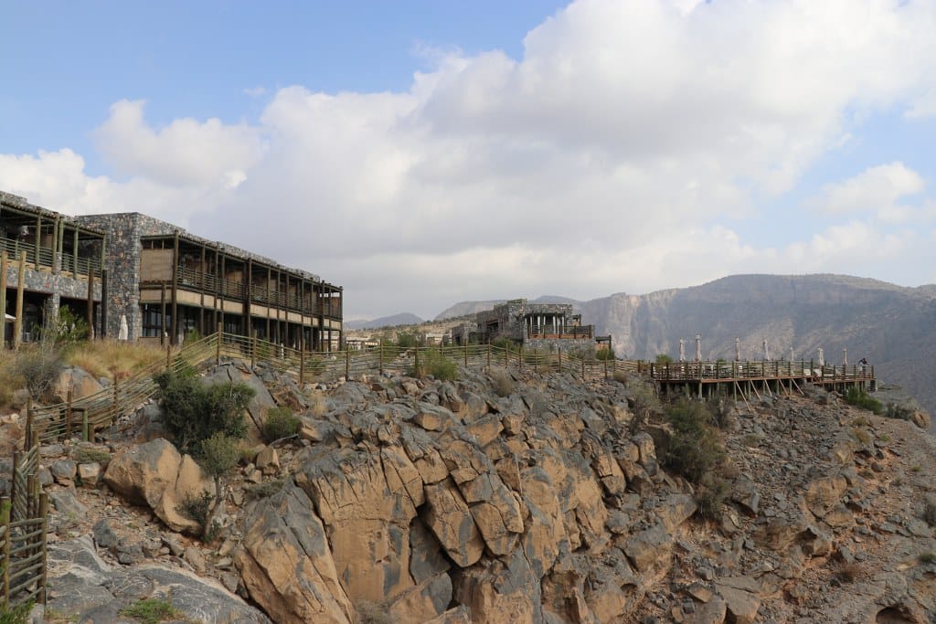 We rijden ruim een prachtige bergpas naar boven om op 2.000 meter te gaan overnachten. Voordeel van het naar boven slingeren is dat ook de temperatuur zakt van 35 graden naar 18 graden, heerlijk! Rijden een klein uur omhoog voordat we onze bestemming bereiken. Aangekomen bij Alila Jebel Akdar, is een ding duidelijk, zo hebben we nog NOOIT overnacht! Een grandioos gave en uniek locatie, hier hebben ze “top of the bill” te pakken in Oman!