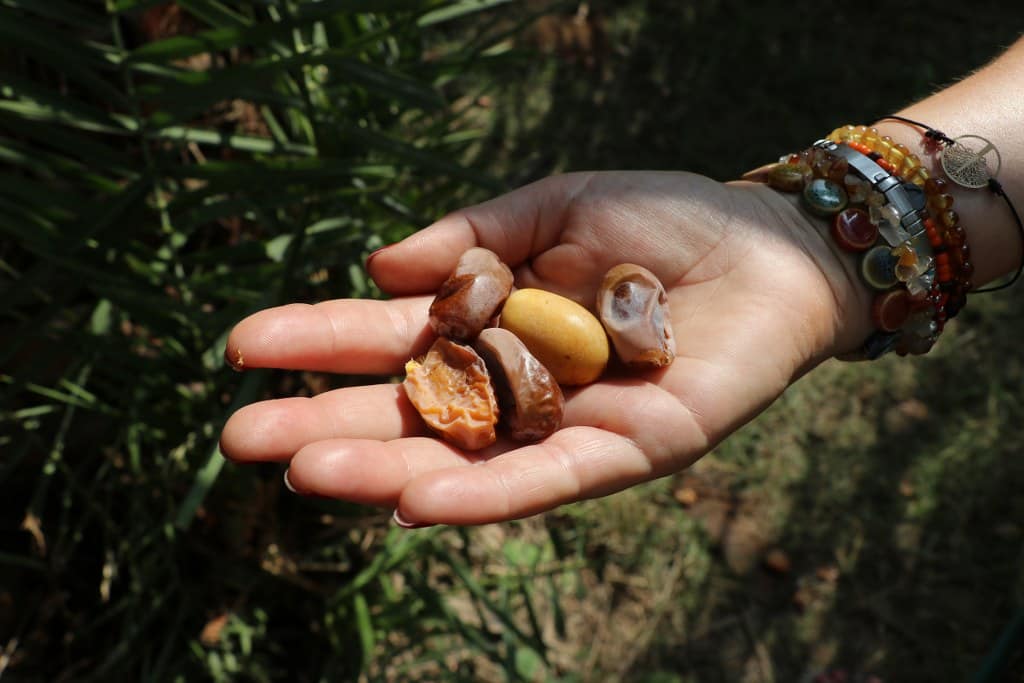 Zoals gemeld: Meer dan 70 dadelsoorten in Oman. We mogen er hier een aantal van proeven, we kopen er geen want we hebben nog een voorraad in de auto liggen.