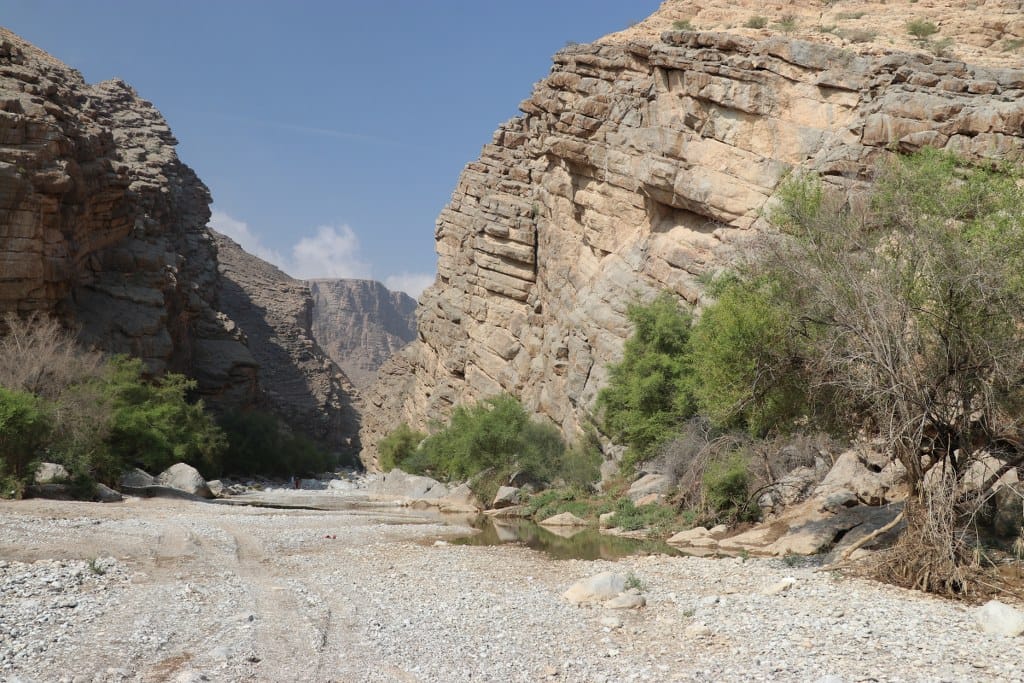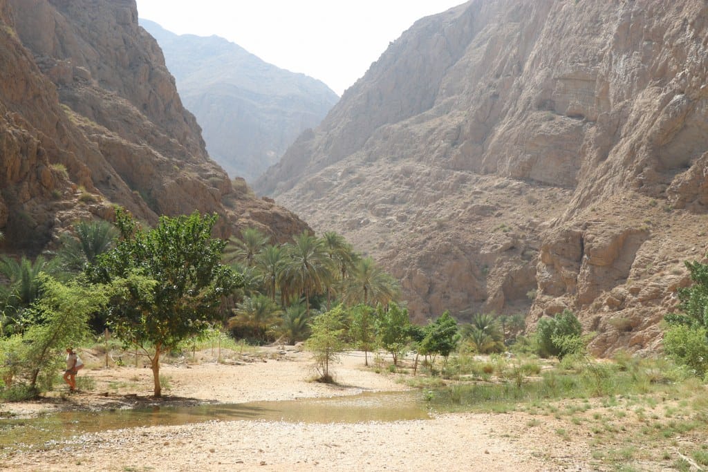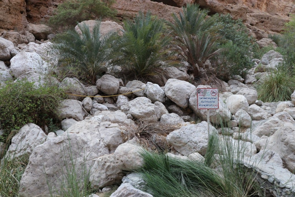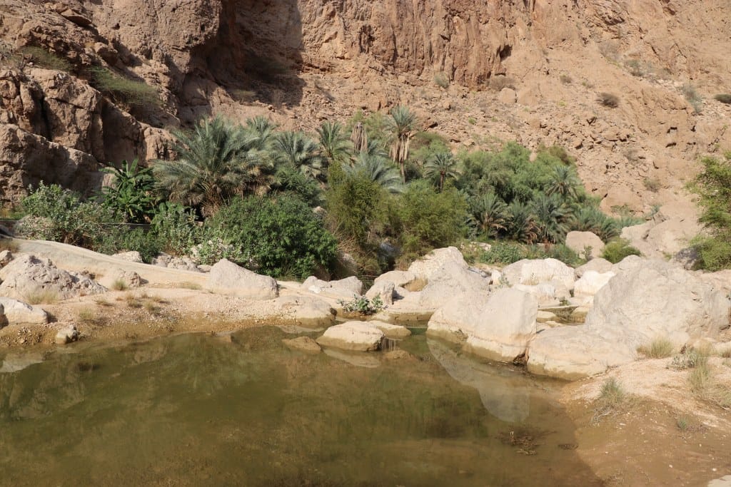 De heenweg mislukt om Wadi Bani Habib te vinden, wellicht waren we te veel gefocust op Alila. Maar goed, vandaag dan toch ff naar toe. Het kaartje, dat we in het hotel kregen dat deed wonderen. Navigatie en detailkaarten zijn af en toe een must! Self-drive, zeker doen, let wel op dat je de juiste middelen ter beschikking hebt, voor ons was het ook af en toe flink zoeken! Waar water is, is groen…..