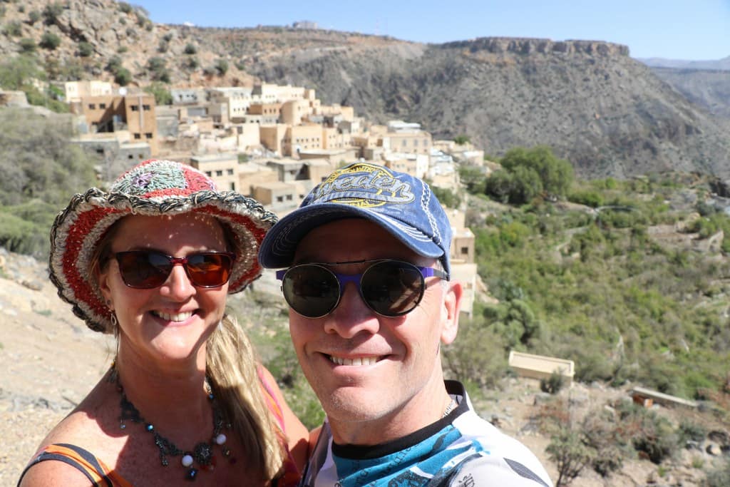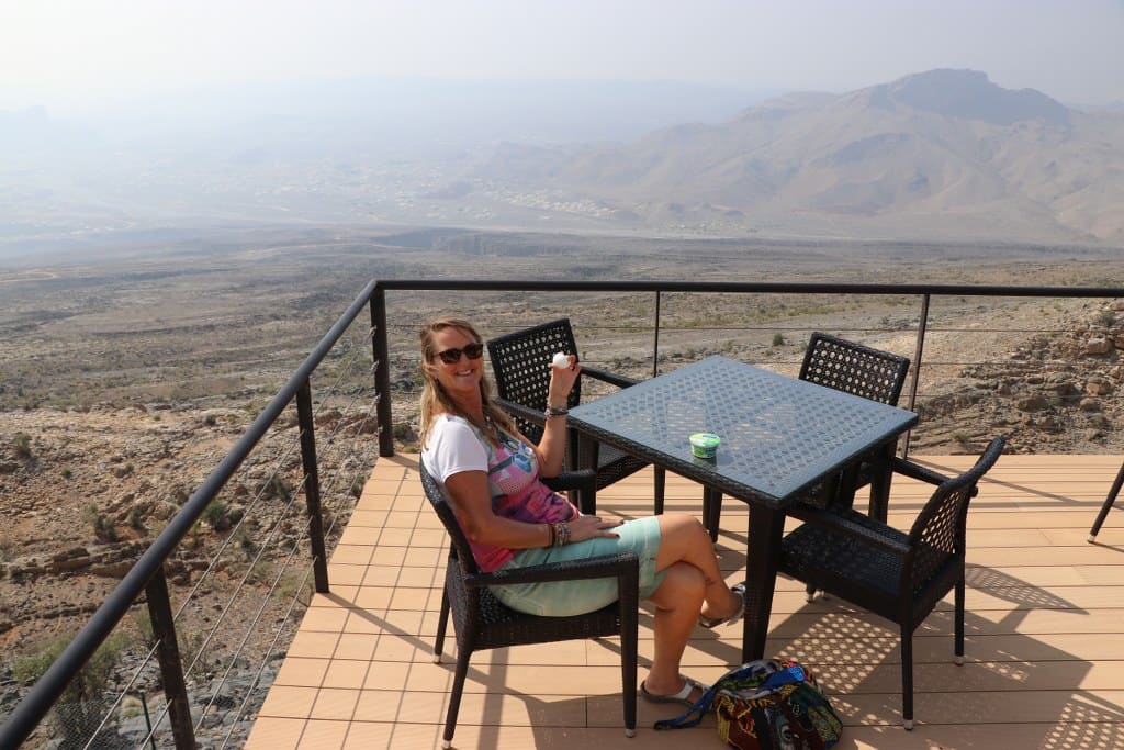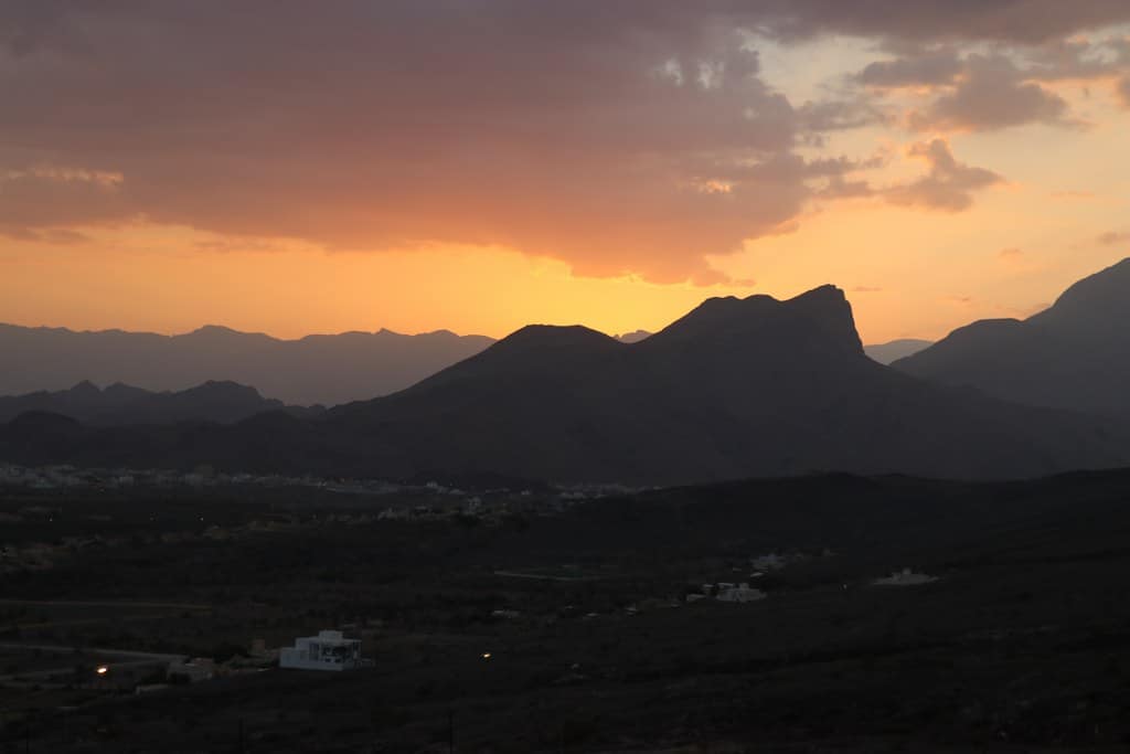 30 oktober: Wat een uitzicht! GOEDEMORGEN (Letterlijk en figuurlijk)! Uitgeslapen tot 07.30 uur en ontbijt met uitzicht. Na het ontbijt zakken we weer af, terug naar Al Hamra. We hebben vandaag een korte verplaatsdag, we rijden vanuit The View naar Misfah Old house.Een ritje van zo’n 15 km. We kunnen dus rustig aan doen! Bij het uitchecken treffen we een jongen uit India aan die in het seizoen hier werkt en wandel- en fietstochten aanbiedt. We boeken een mountainbike tocht voor morgenochtend. Rond 10.30 uur verlaten we dit prachtige verblijf, op naar de klei/modder huisjes en dadel plantages in Al Hamra. Een nacht is eigenlijk te kort hier, maar goed we hebben een bepaald schema dus het is zoals het is! The View dus………..