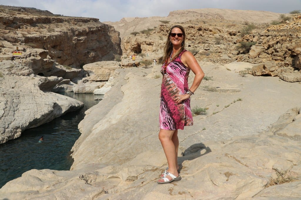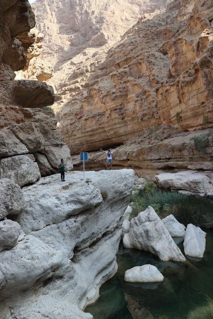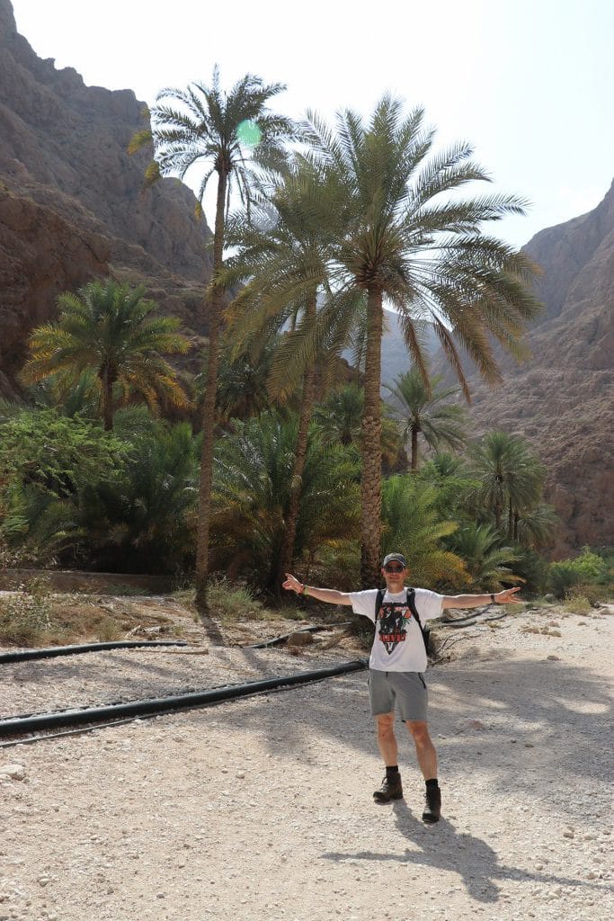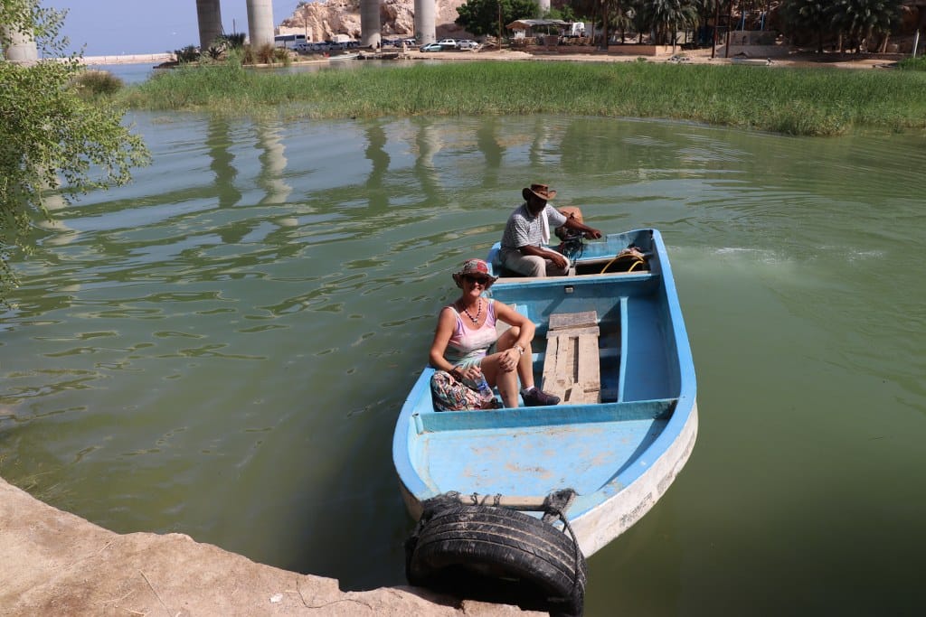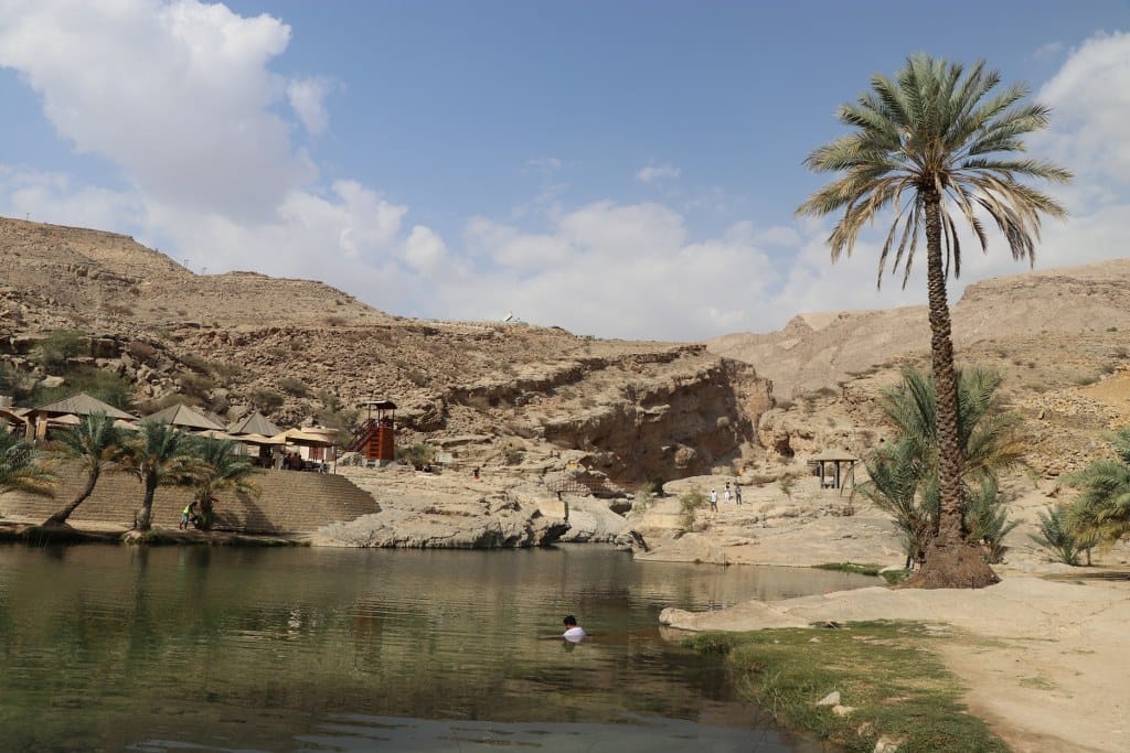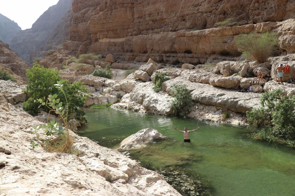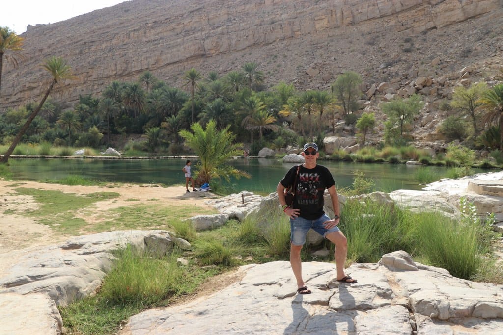 Wadi Tiwi ligt een paar kilometer verder op, hier kun je met de auto in dus we knorren nog een stukje deze Wadi in. Water in de woestijn, heerlijk!