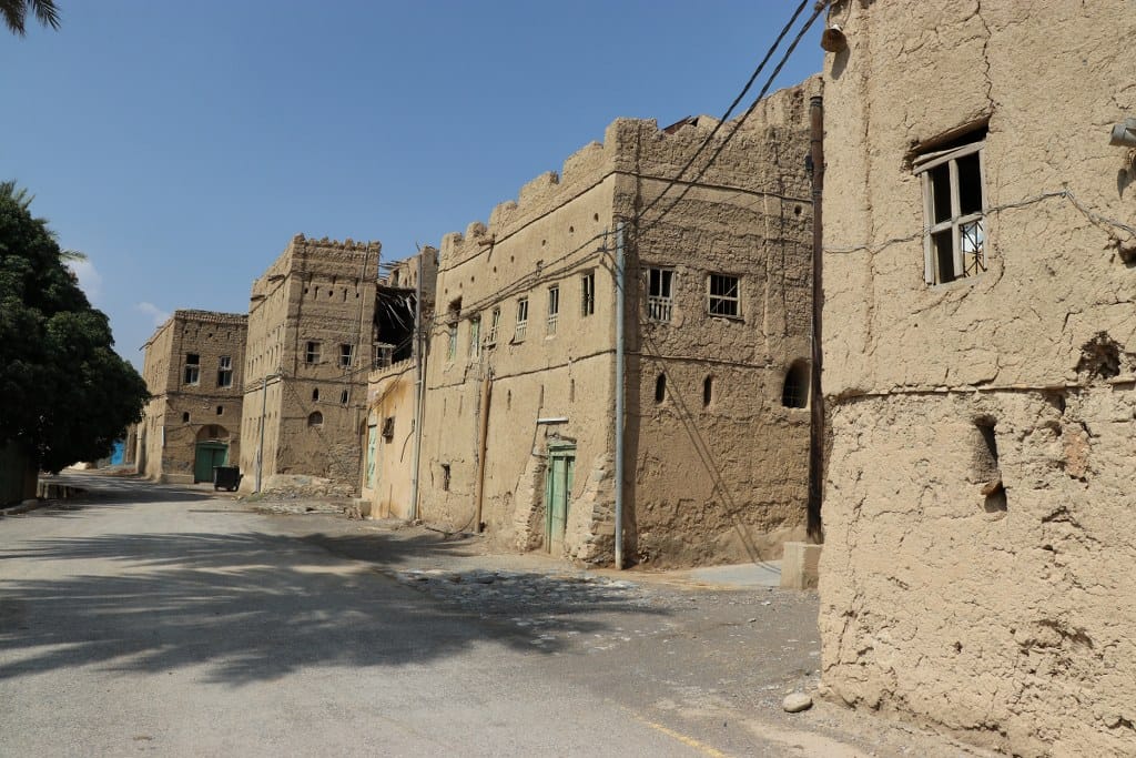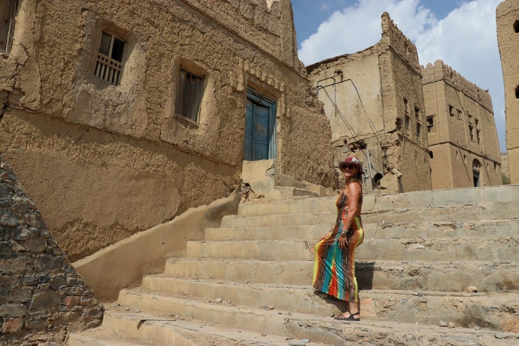 Vandaag 7,5 km afdalen, gisteren 7,5 km onverhard omhoog. De “Clay Houses” in Al Hamra zijn zo’n 20 jaar niet meer bewoond en enkele dateren al van 400 jaar terug. Het is erg leuk in dit dorpje rond te lopen, enkele huisjes bezoeken we ook van binnen maar aangezien het allemaal bouwvallen zijn weten we niet of dat wel zo verstandig is. Instortingsgevaar? Wat ook hier weer opvalt is dat in dit “open lucht museum” geen toerist te bekennen is.