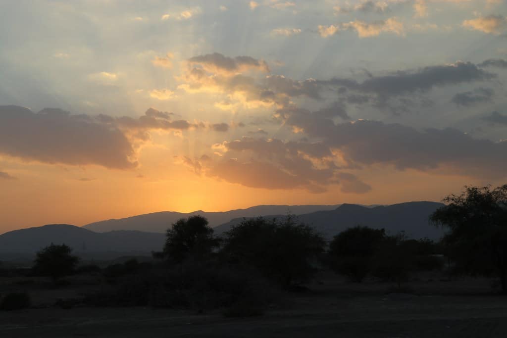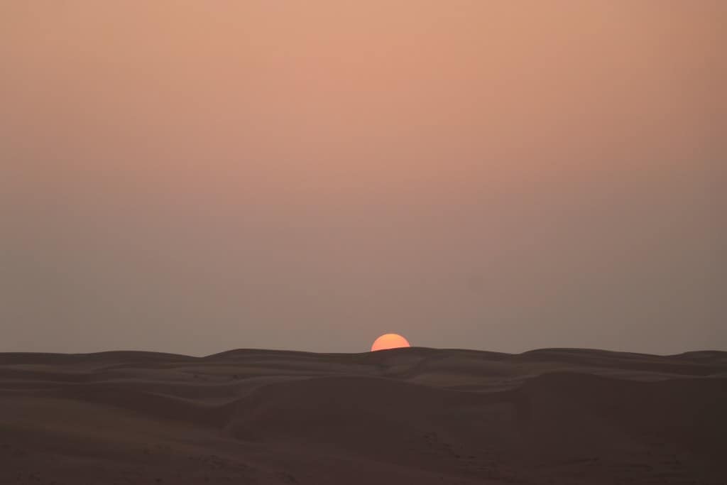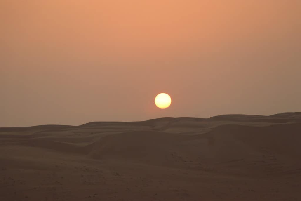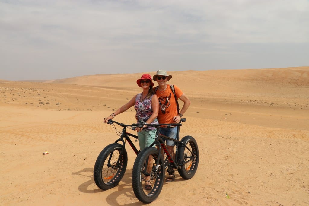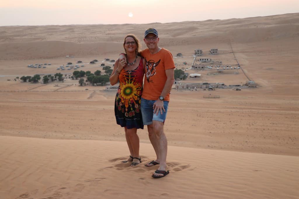 29 oktober: GOEDEMORGEN woestijn! We gaan de woestijn vandaag weer verlaten en rijden naar The View nabij Al Hamra. De naam The View alleen al, dat gaat wat beloven. Zo’n 300 km voor de wielen vandaag! Deze ochtend staat voor Jolanda in het teken van vroeg opstaan om de sunrise in de woestijn te bekijken. 05.15 uur nestje uit en klimmen, die zandduinen op voor een goed beeld. Nu is het lopen wel te doen op blote voetjes. Ruudje slaapt deze ochtend uit tot 06.30 uur.