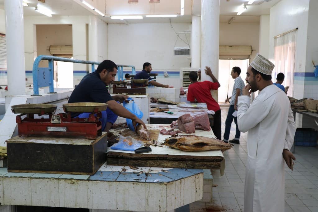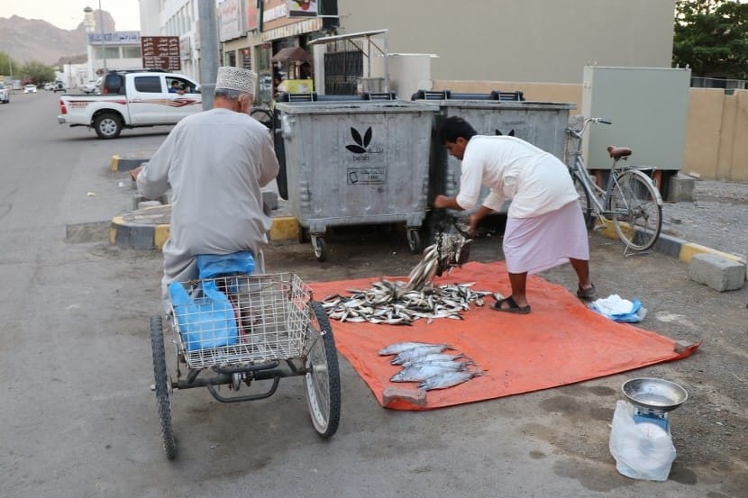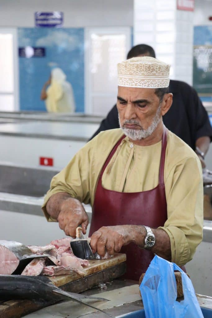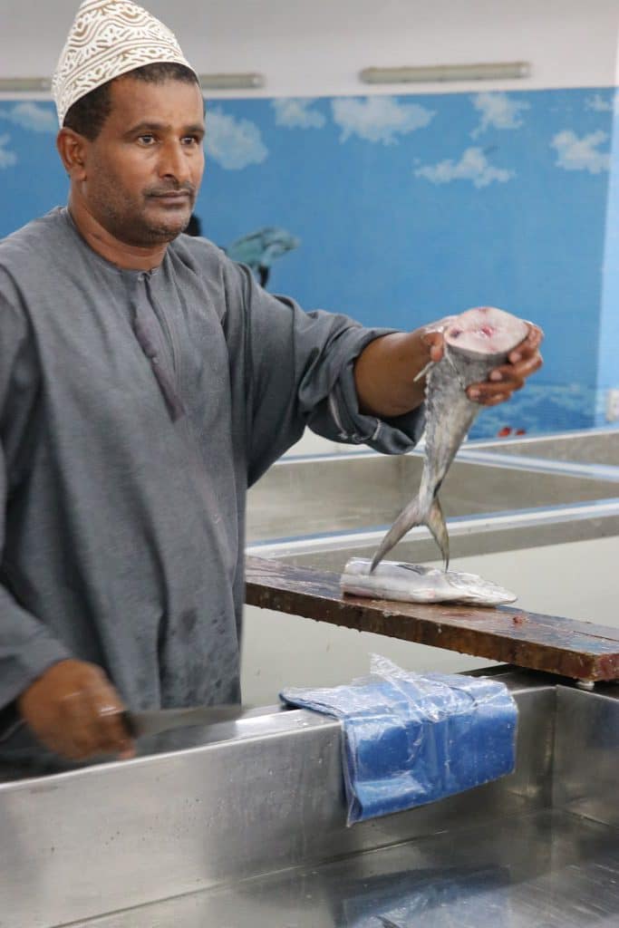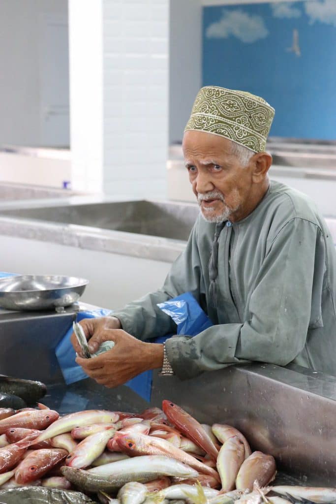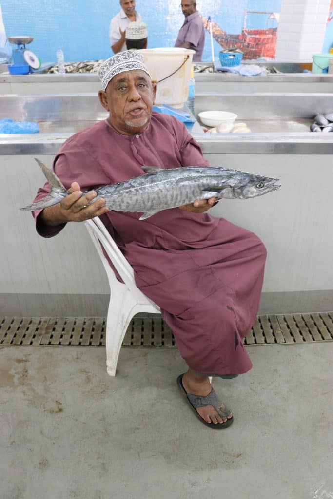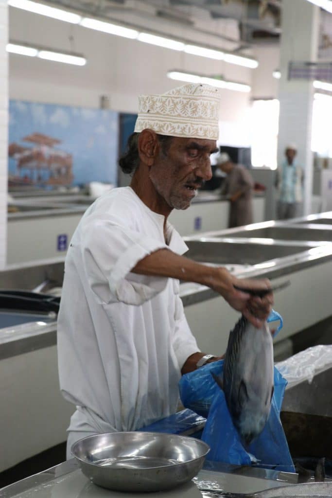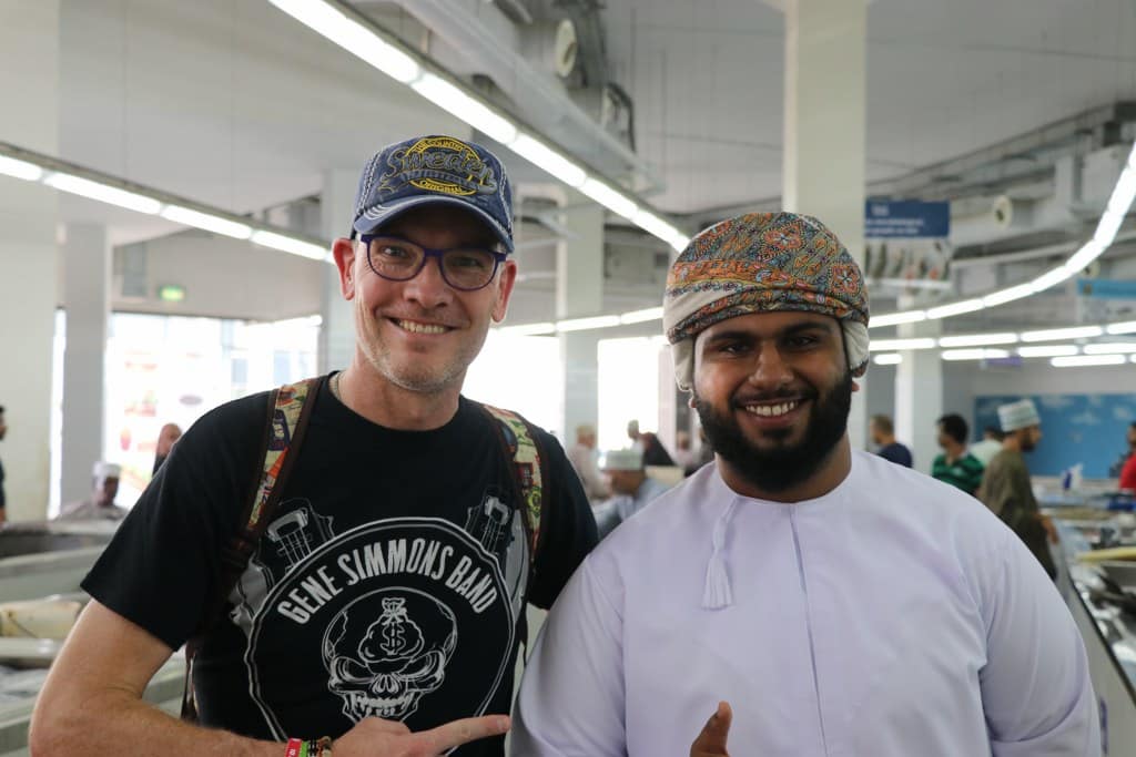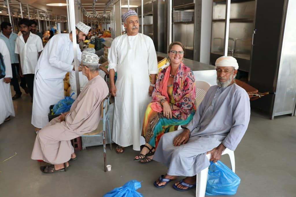 Tot over een uur Jolanda…….. Na het ontbijt gaan we de Vis markt van Muscat bezoeken! Muscat is de op een na zuiverste stad van de wereld, Singapore is hierin de leider. Je kunt dit ook overal zien, kunt bijna overal van de grond eten hier en overal staan mensen te poetsen en te reinigen. Op naar de vis-, vlees- en groentemarkt. Vooral het vis gedeelte ruikt heerlijk! Deze markt mag je niet missen en de Omani hebben er geen enkel probleem mee als deze twee Brabanders wat foto’s schieten!