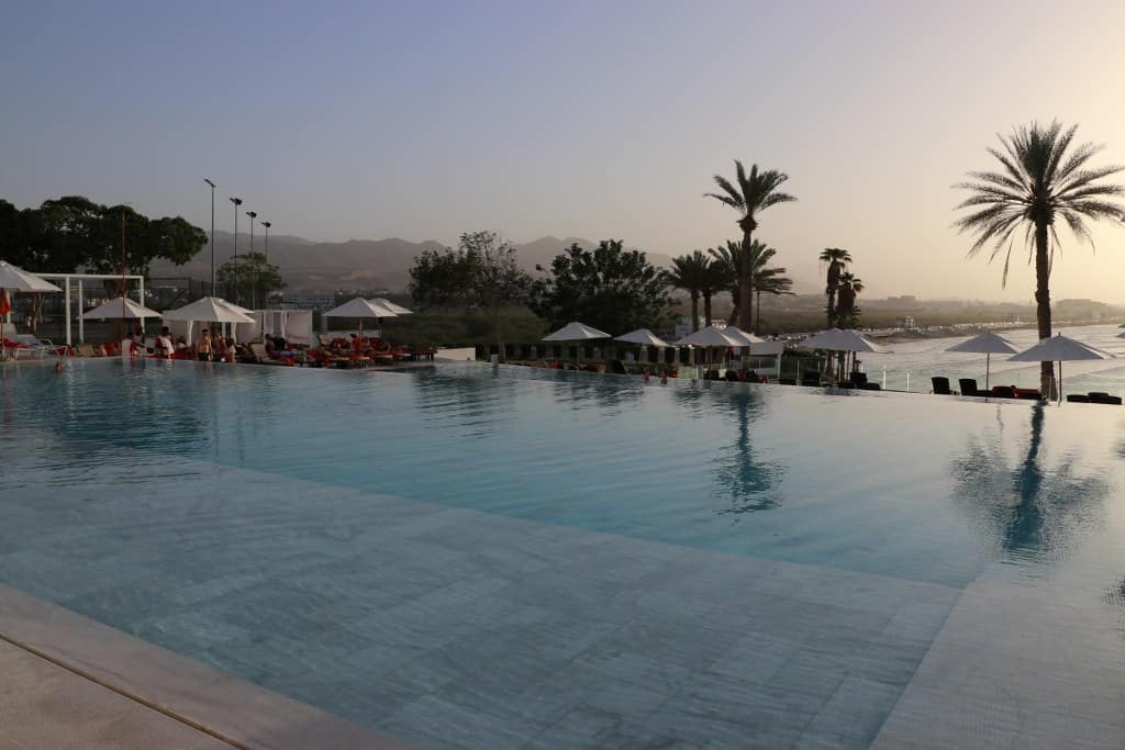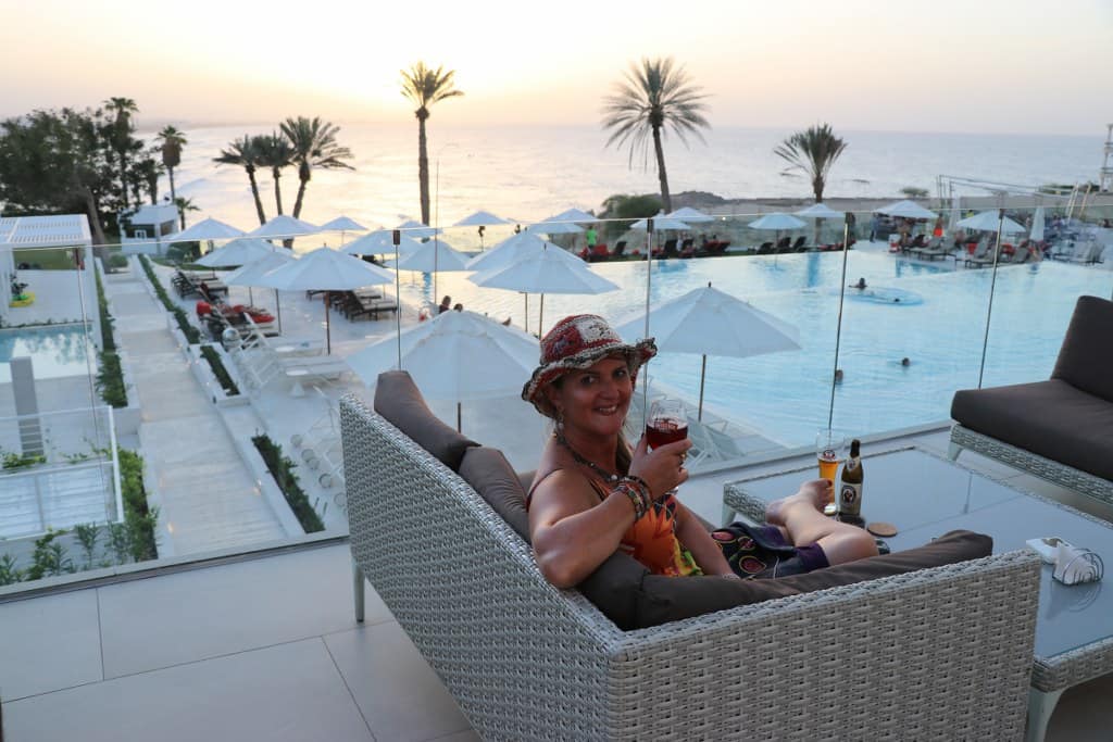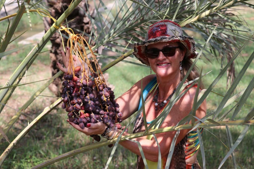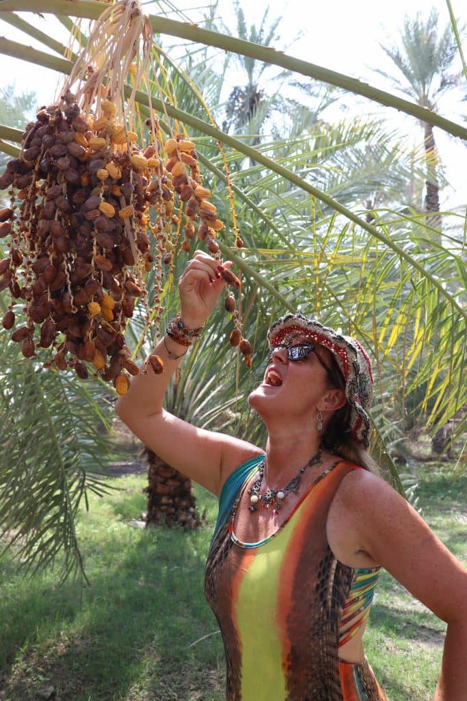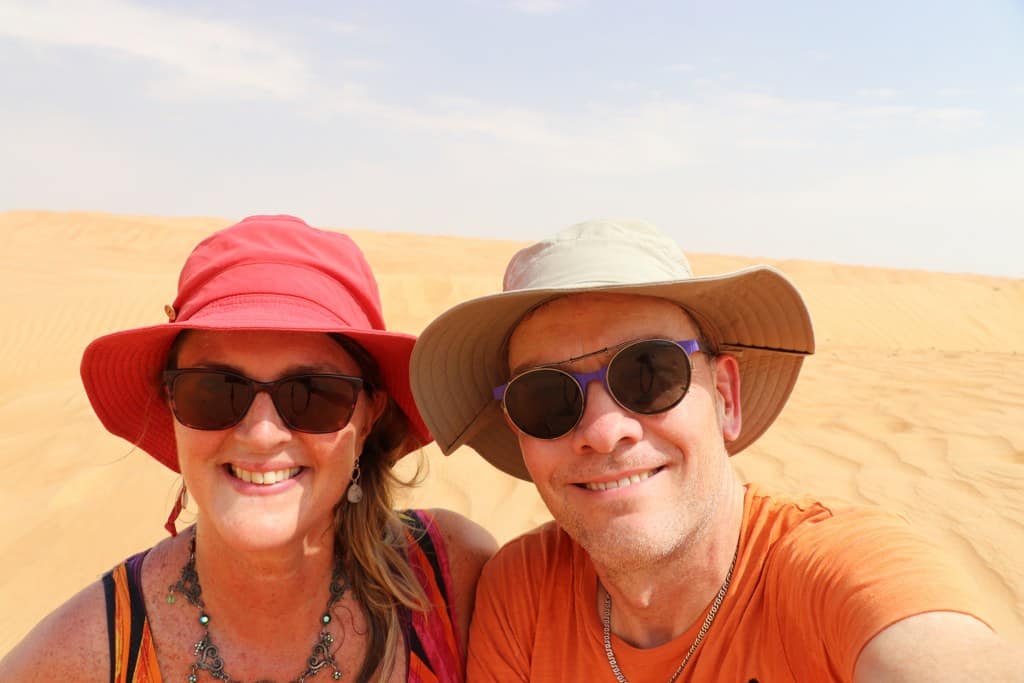 Het zou koud worden in de woestijn, erg blij dat we onze handschoenen en muts meegenomen hebben……. Waar is dan die kou? In plaats van kou, zwetend wakker! Na de lunch relaxtijd (dik verdiend!) aan het zwembad in de woestijn! Heerlijk! Voor de oplettende lezer, Ruud met d’n Aardschok en Jolanda met de Happinez.