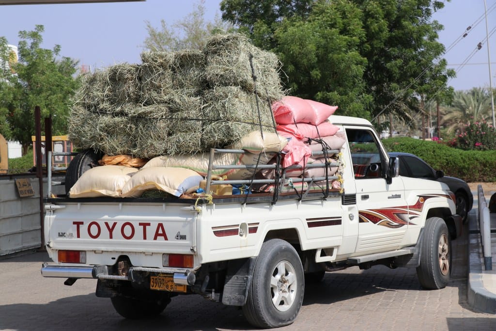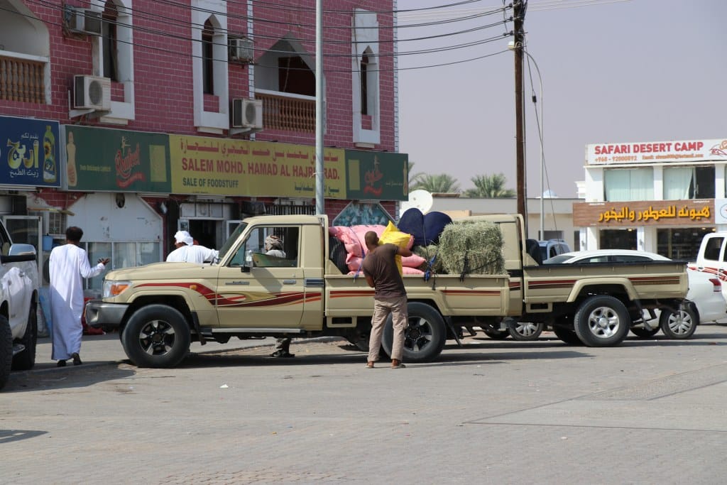 Lopende shoarma……. Waarna we binnen rijden in Qurayyat, alwaar het fort nog een mooie schatkist voor de deur heeft staan. Het transport van dieren gaat hier nog op een manier die wij in Nederland niet ondersteunen!
