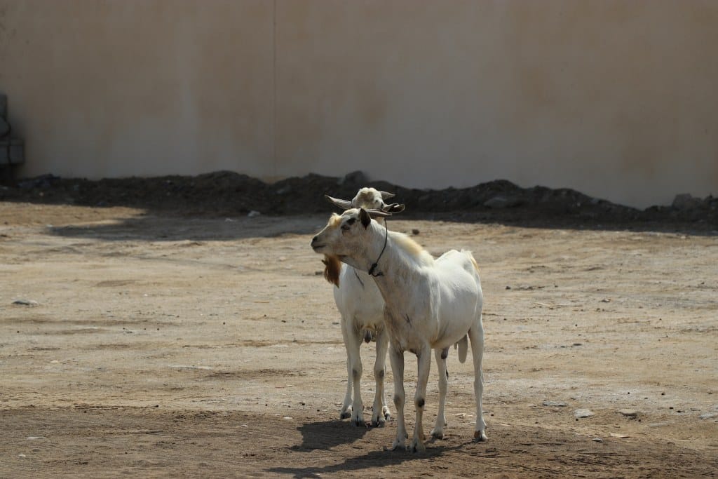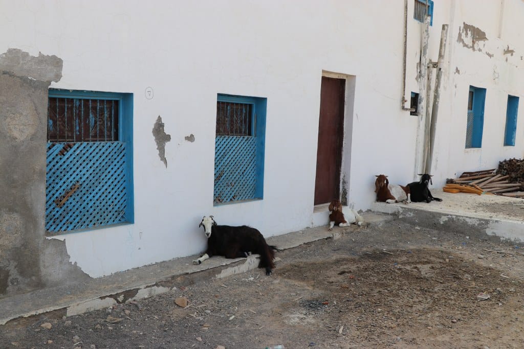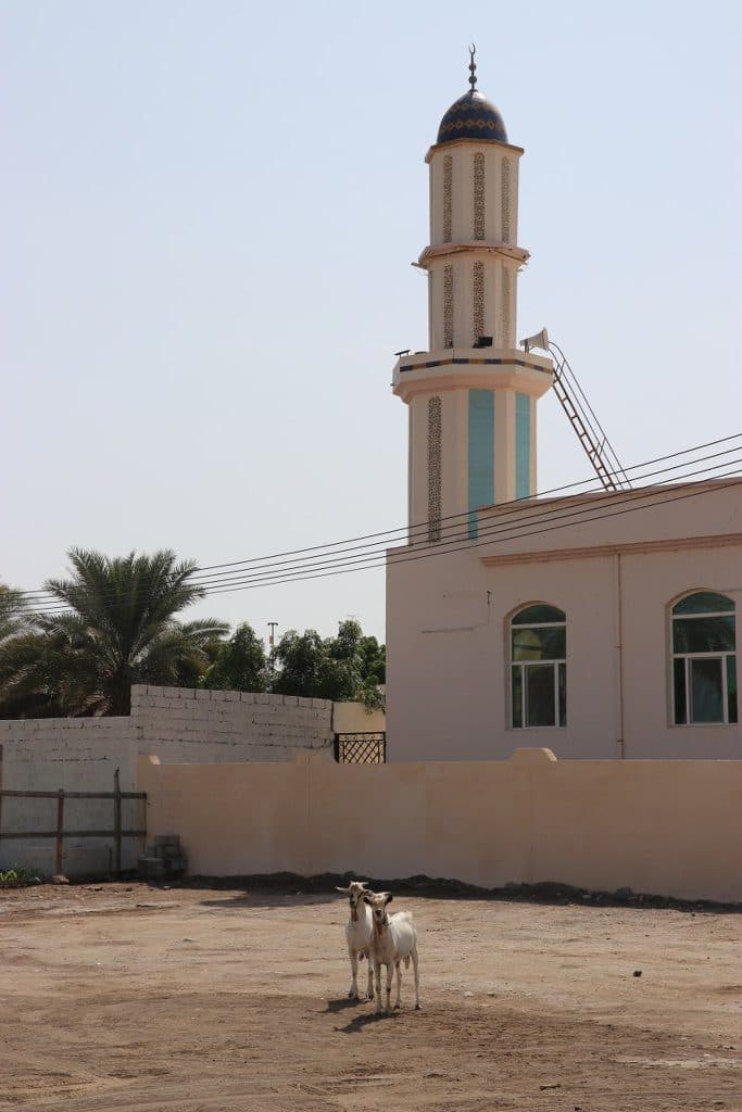 Op vrijdag is hier de beroemde Nizwa geitenmarkt, helaas is het nu donderdag dus moeten we dat fenomeen missen. Gelukkig is er toch nog een geit achterbleven………